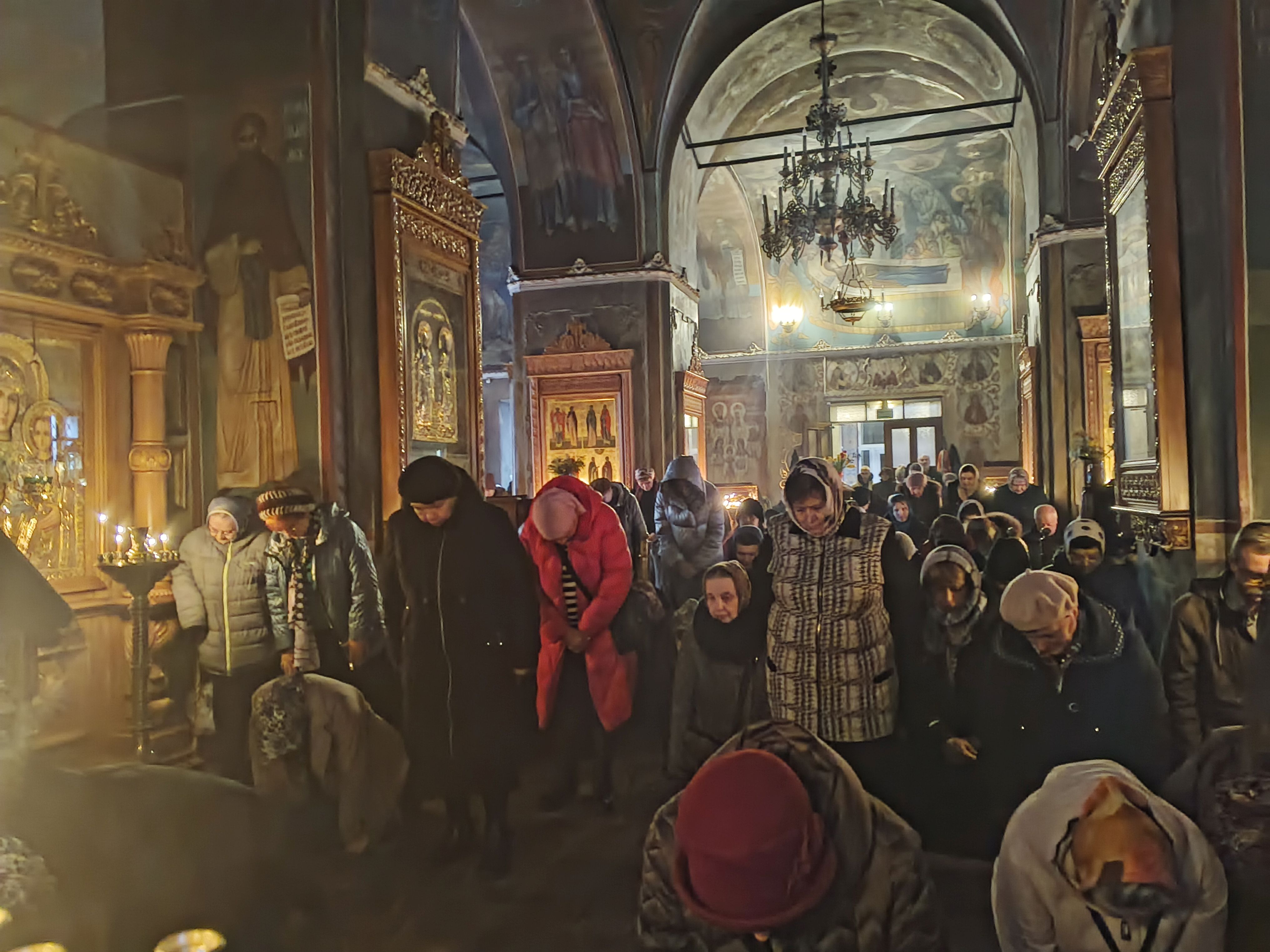 Возглавил чин прощения настоятель храма, секретарь Калужской епархии, игумен Мефодий (Пронькин), сослужил ему клир храма, сам храм был заполнен прихожанами - каждый хотел начать Великий пост оставив долги за порогом.