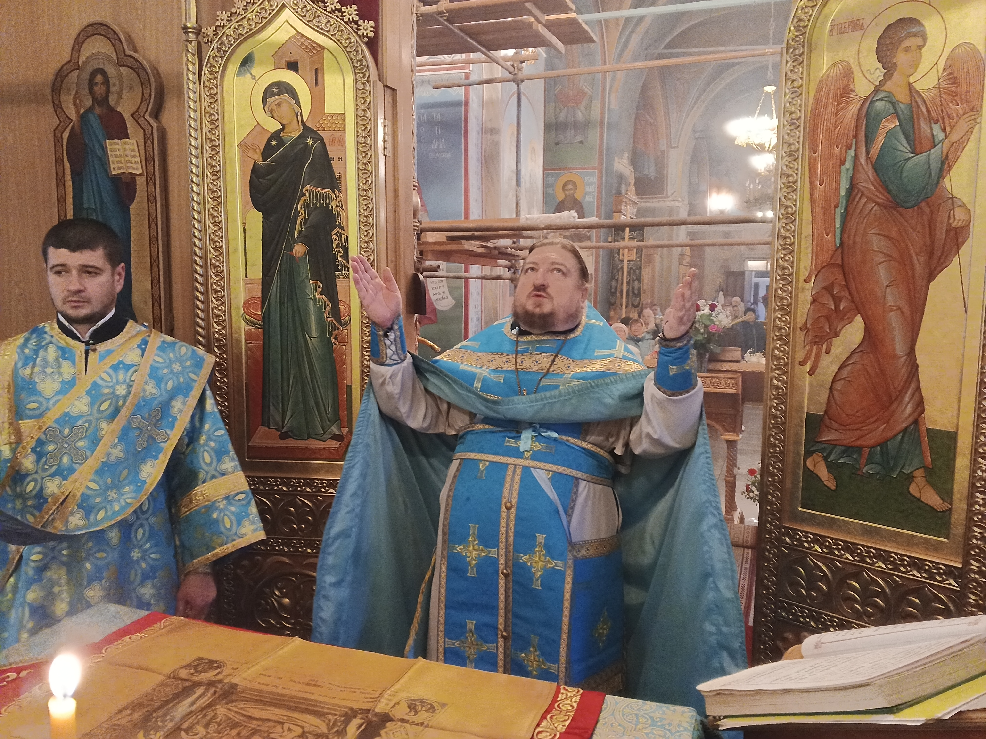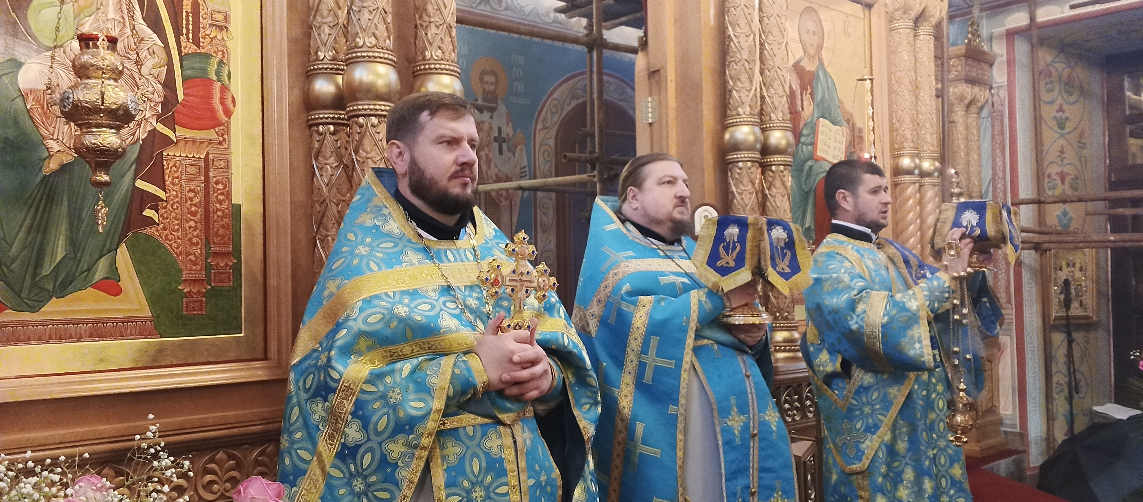 По отпусте литургии был совершен чин славления пред иконой Покрова Пресвятой Богородицы и отец настоятель произнёс проповедь.