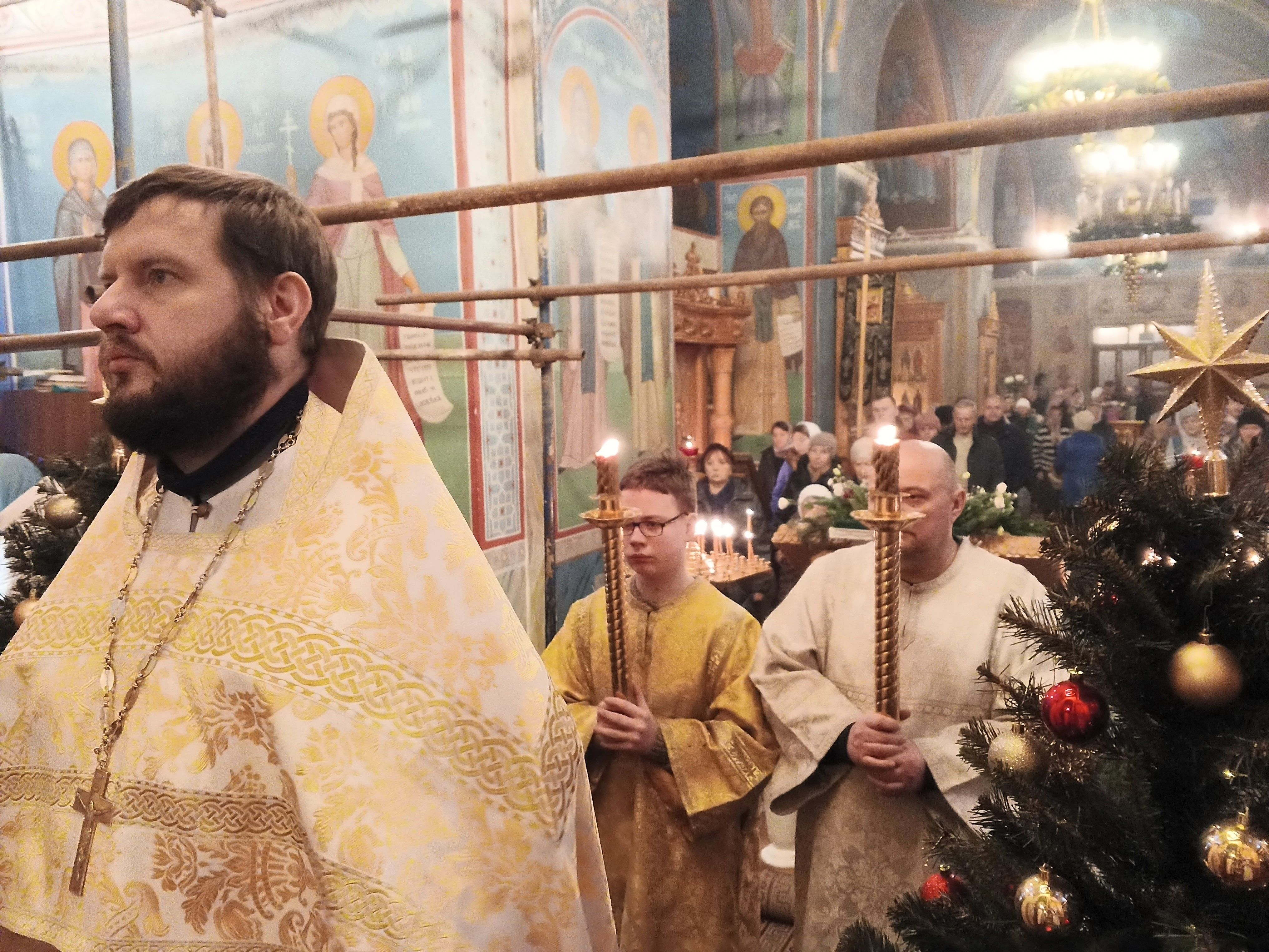 12 января, Неделя 29-я по Пятидесятнице, по Рождестве Христовом, прав.Иосифа Обручника, Царя Давида псалмопевца, ап. Иакова, брата Божьего, в храме святого пророка Иоанна Предтечи в Калуге воскресные богослужения начались с всенощного бдения, возглавил которое иерей Александр Беляев. Утром были совершены две Божественные литургии.