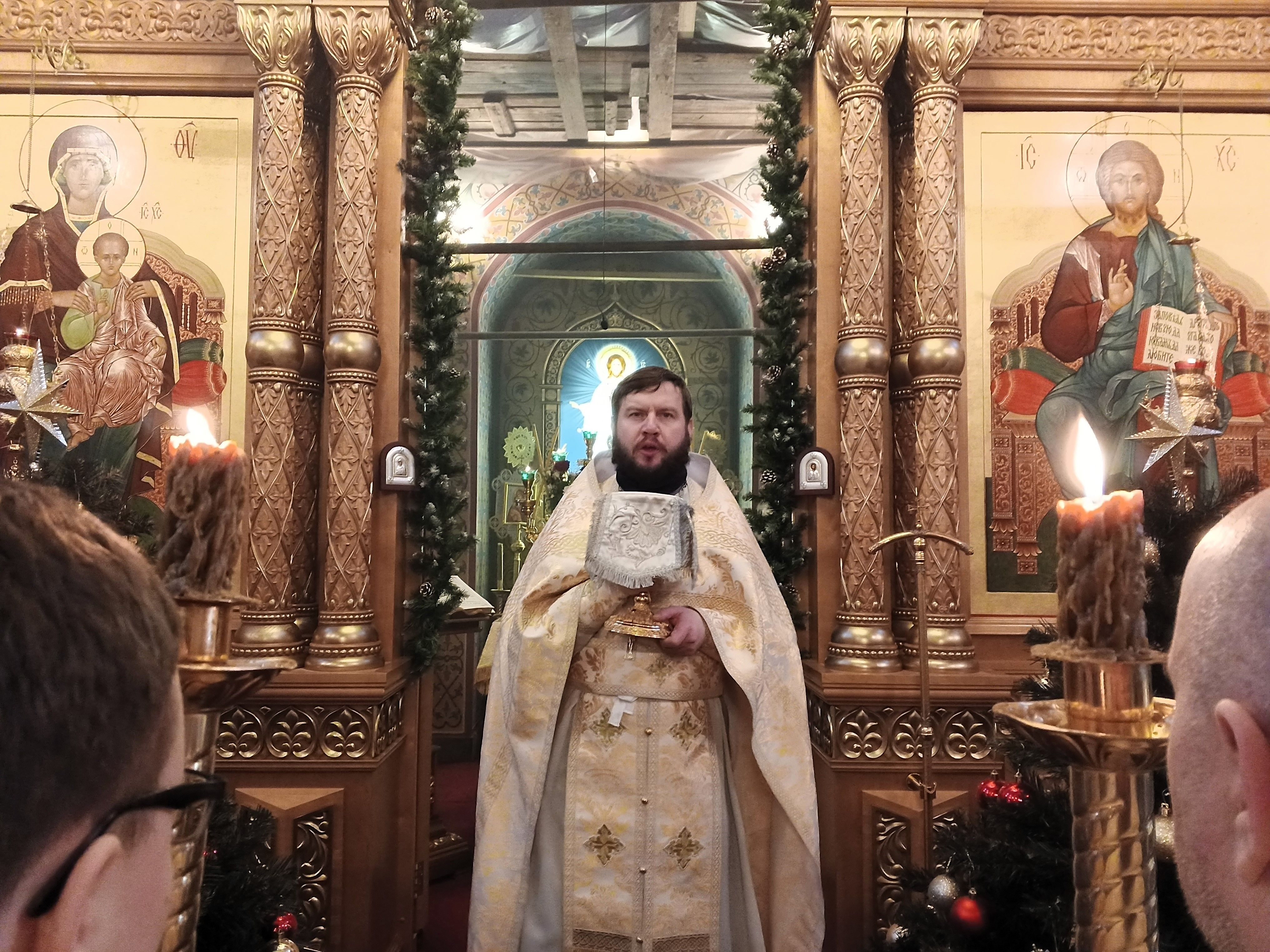 По отпусте литургии был совершен благодарственный молебен и отец Александр произнес проповедь.