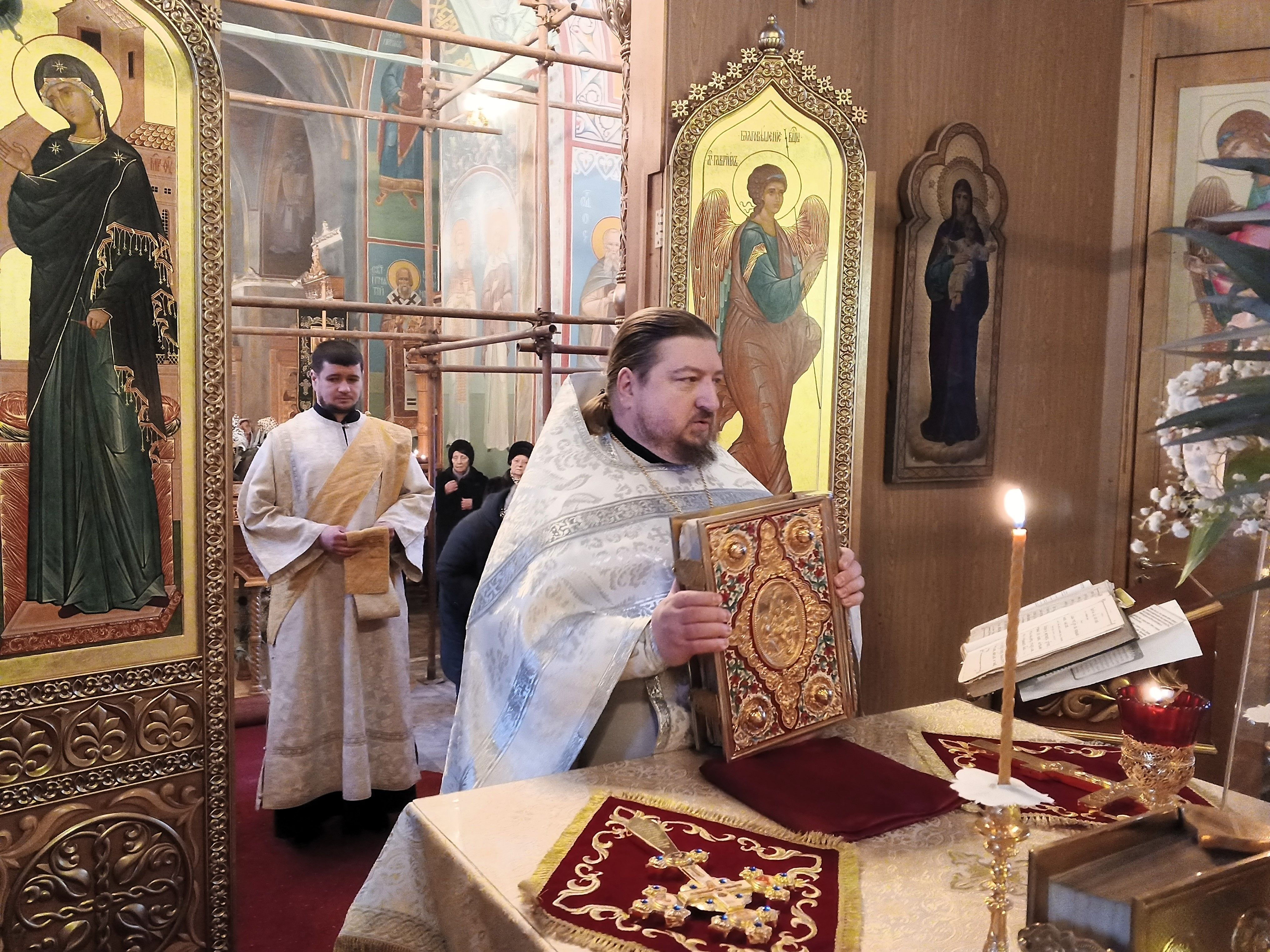 Позднюю литургию возглавил игумен Мефодий (Пронькин) в сослужении иерея Александра Беляева и диакона Виктора Старосты.