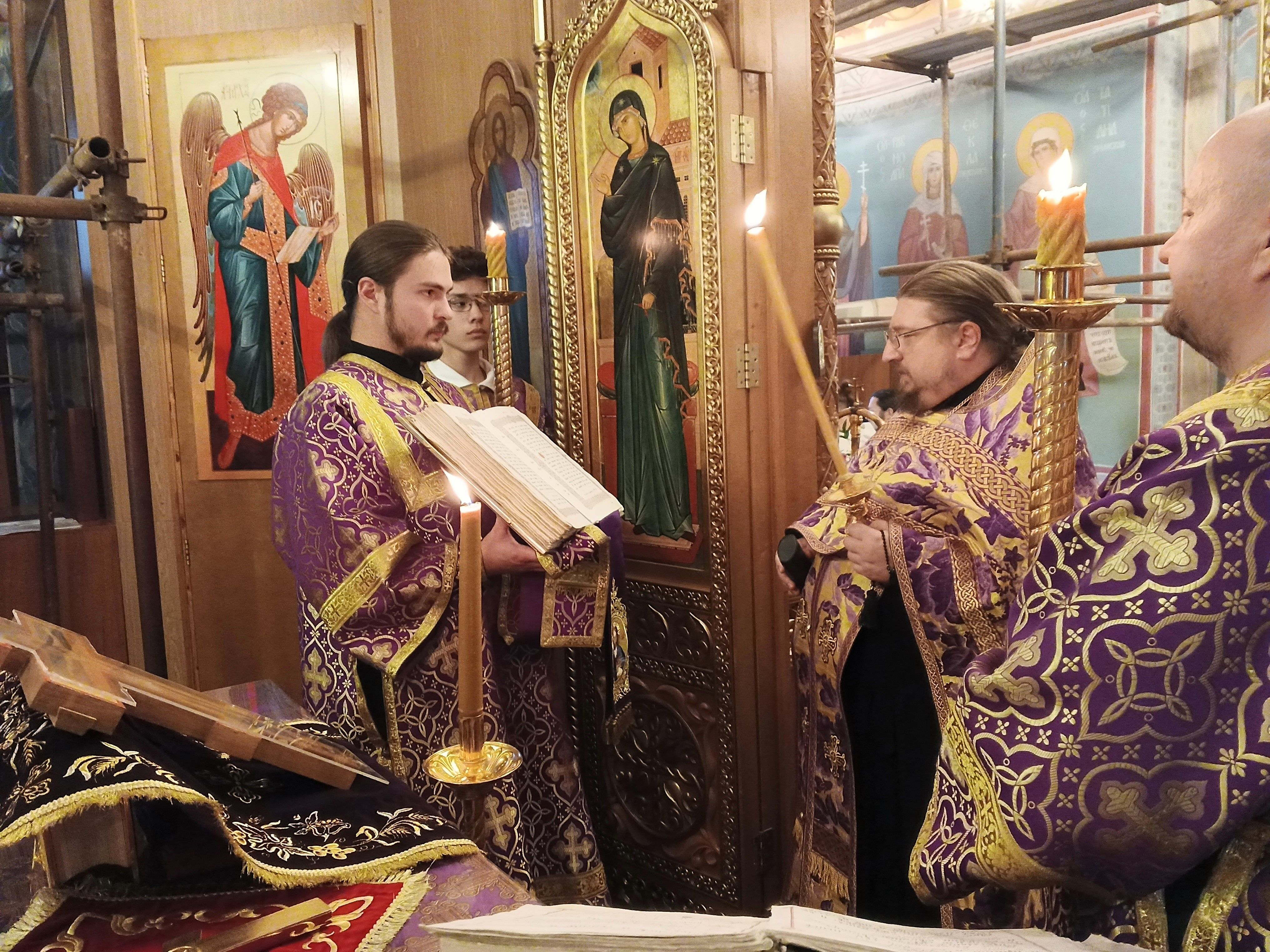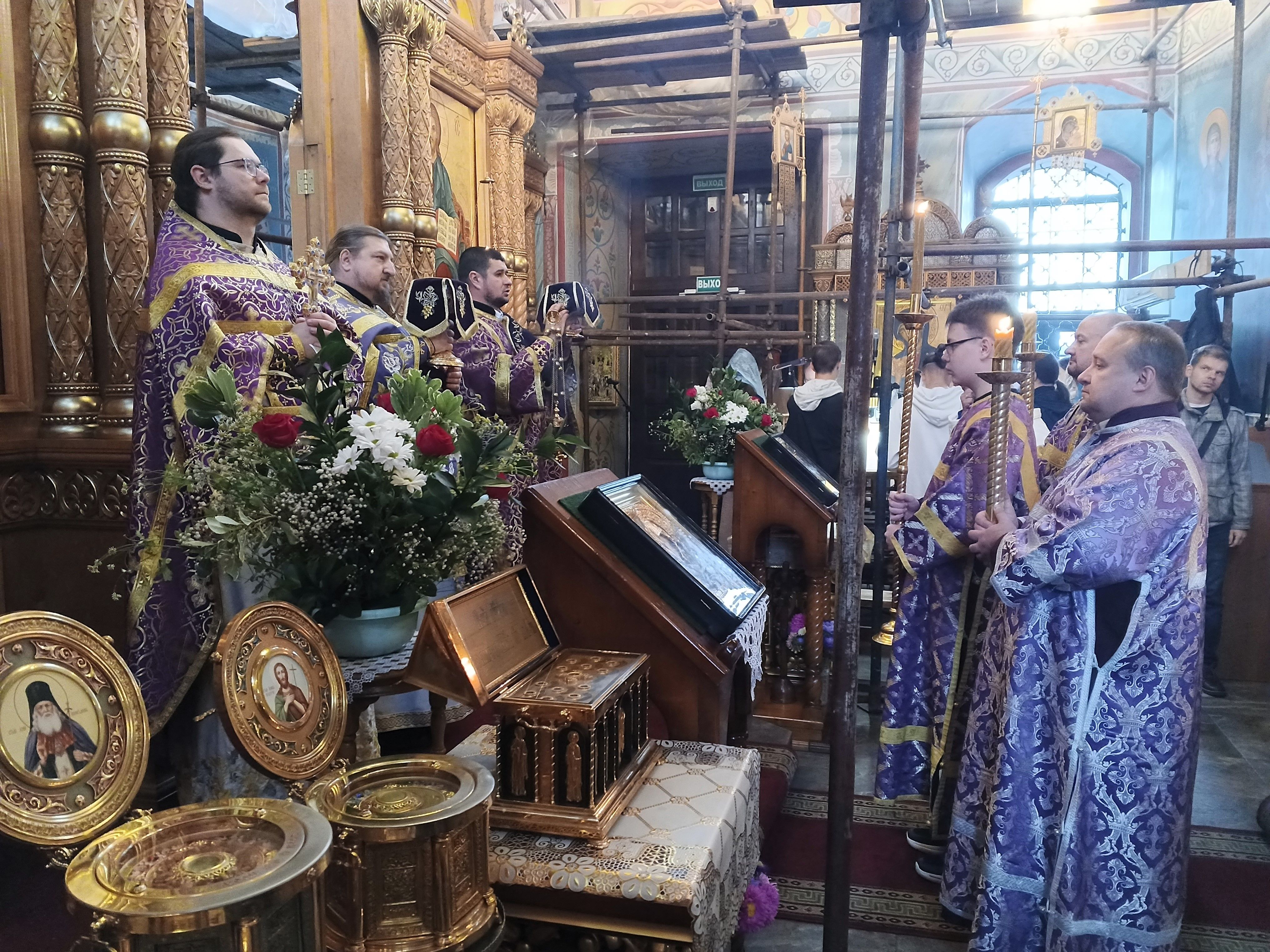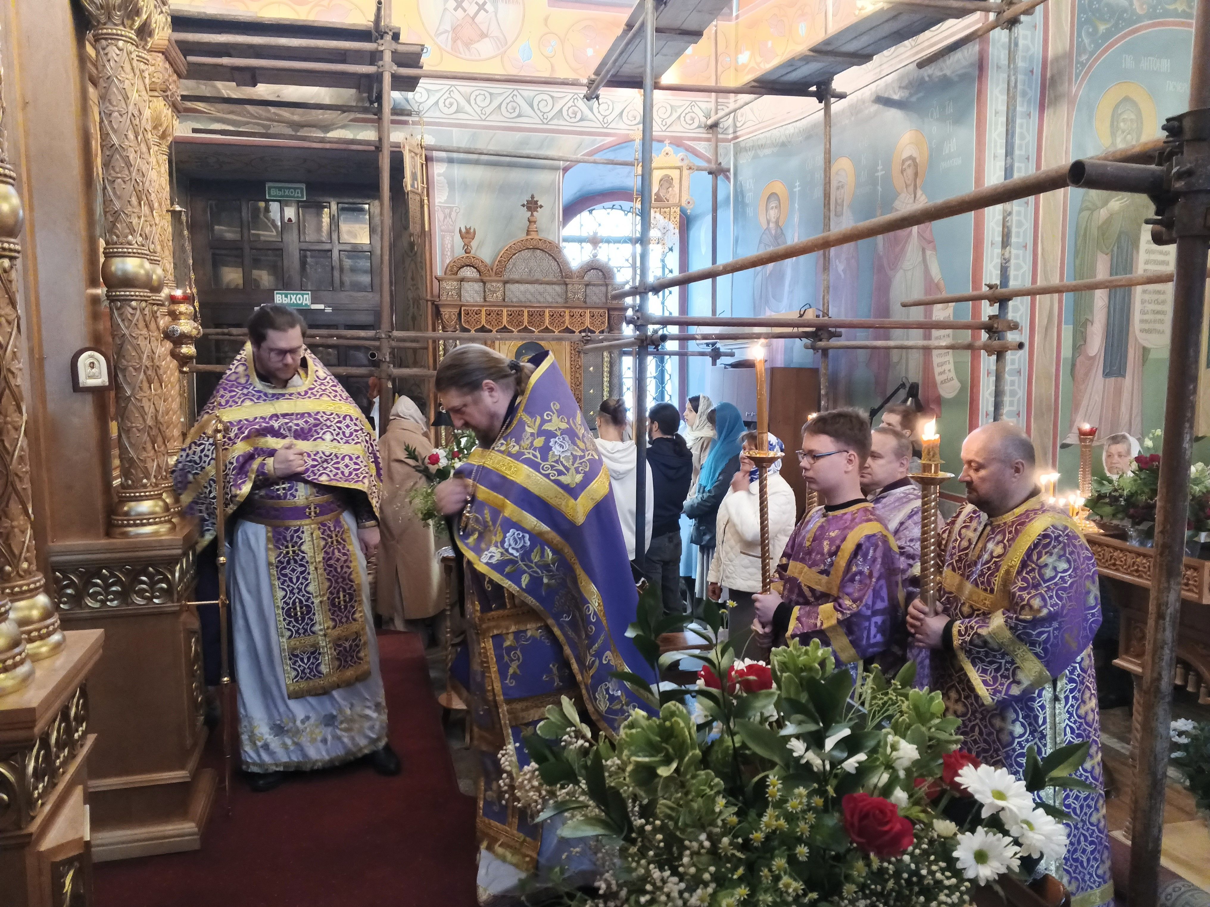Раннюю Божественную литургию в южном пределе Сергия Радонежского, совершил иерей Анатолий Кукушкин, помогал диакон Никита Романовский. Исповедь принимал иерей Павел Степанюк.