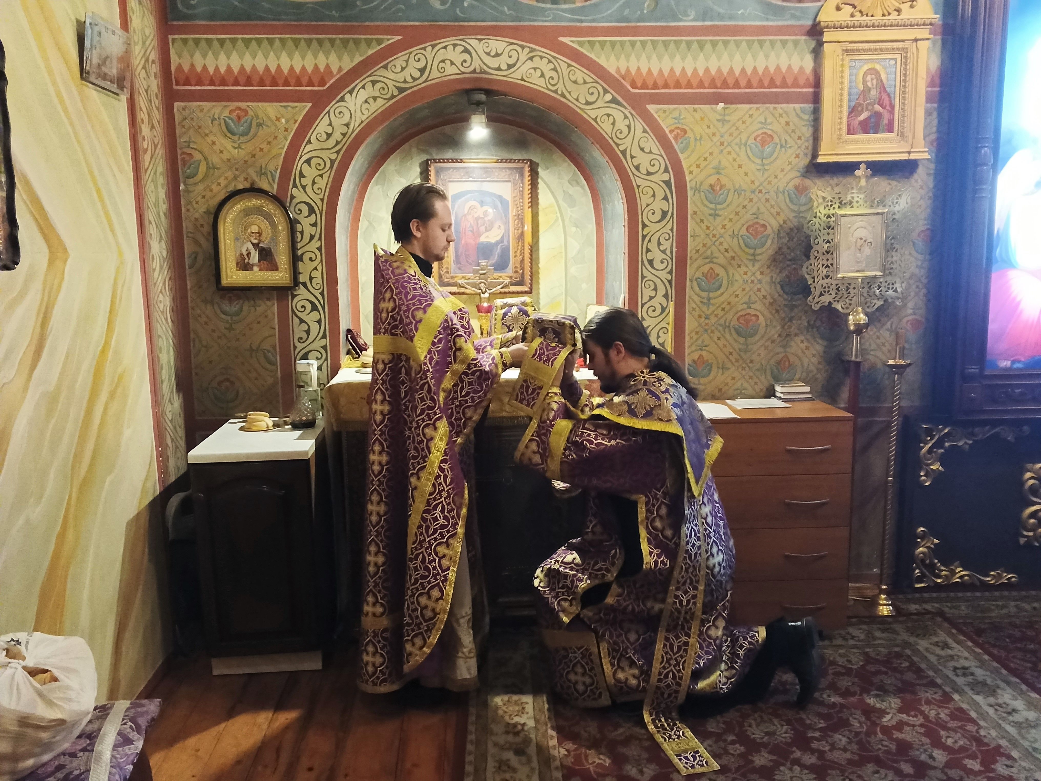 Позднюю литургию в центральном пределе, возглавил игумен Мефодий (Пронькин) в сослужении иерея Павла Степанюка и диакона Виктора Старосты. Исповедь принимал иерей Анатолий Кукушкин.
