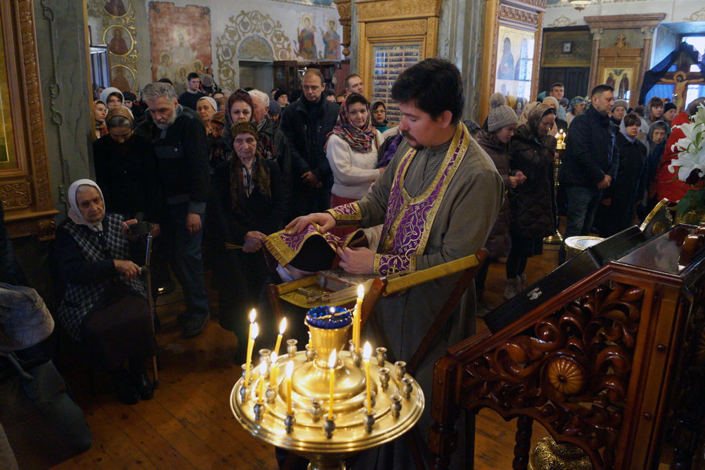 В воскресенье богослужения начались ранней литургией - совершал ее священник Евгений Холявко при дьяконе Викторе Староста в северном приделе. После отпуста и поклонения Кресту совершена панихида.
