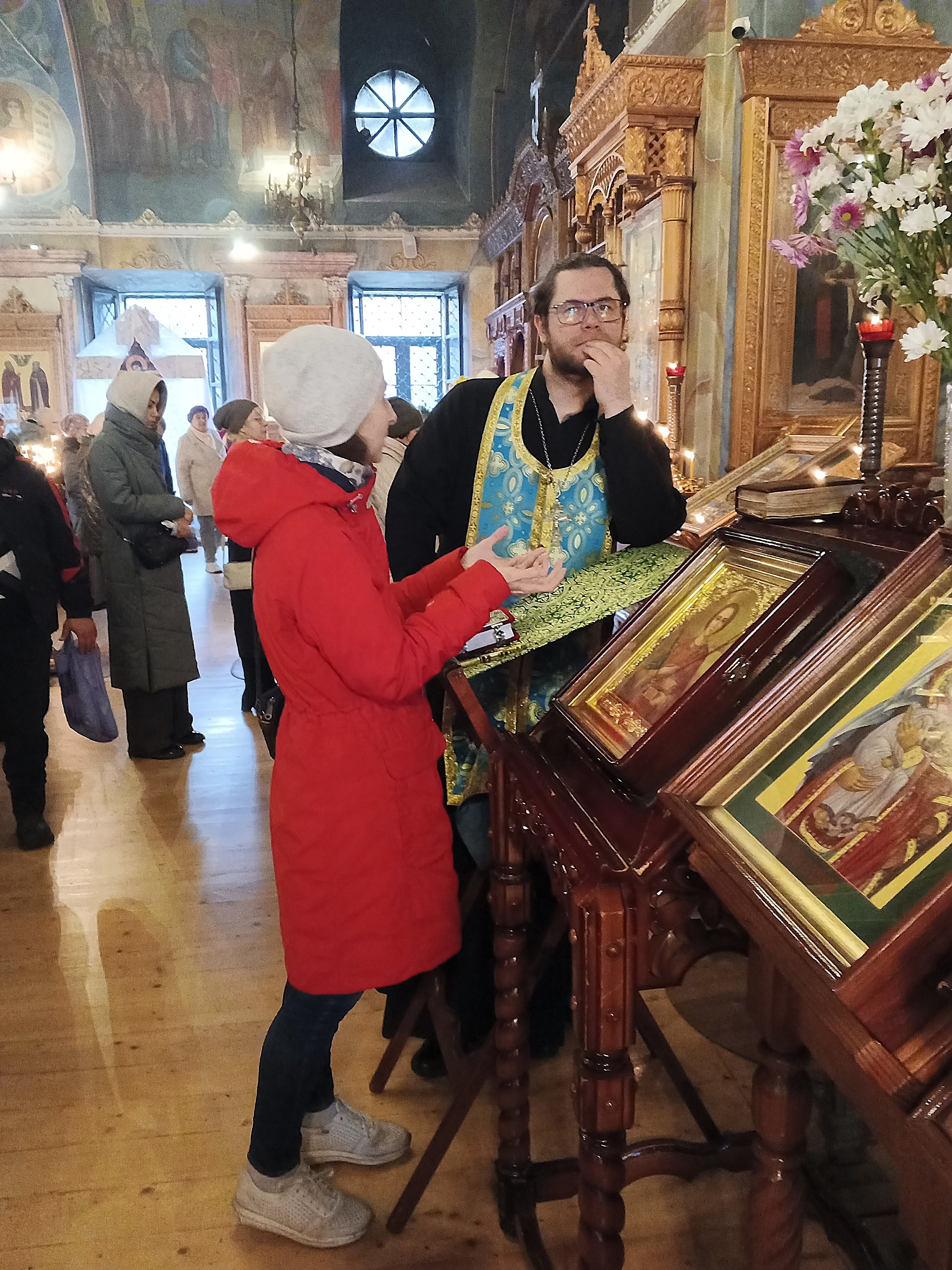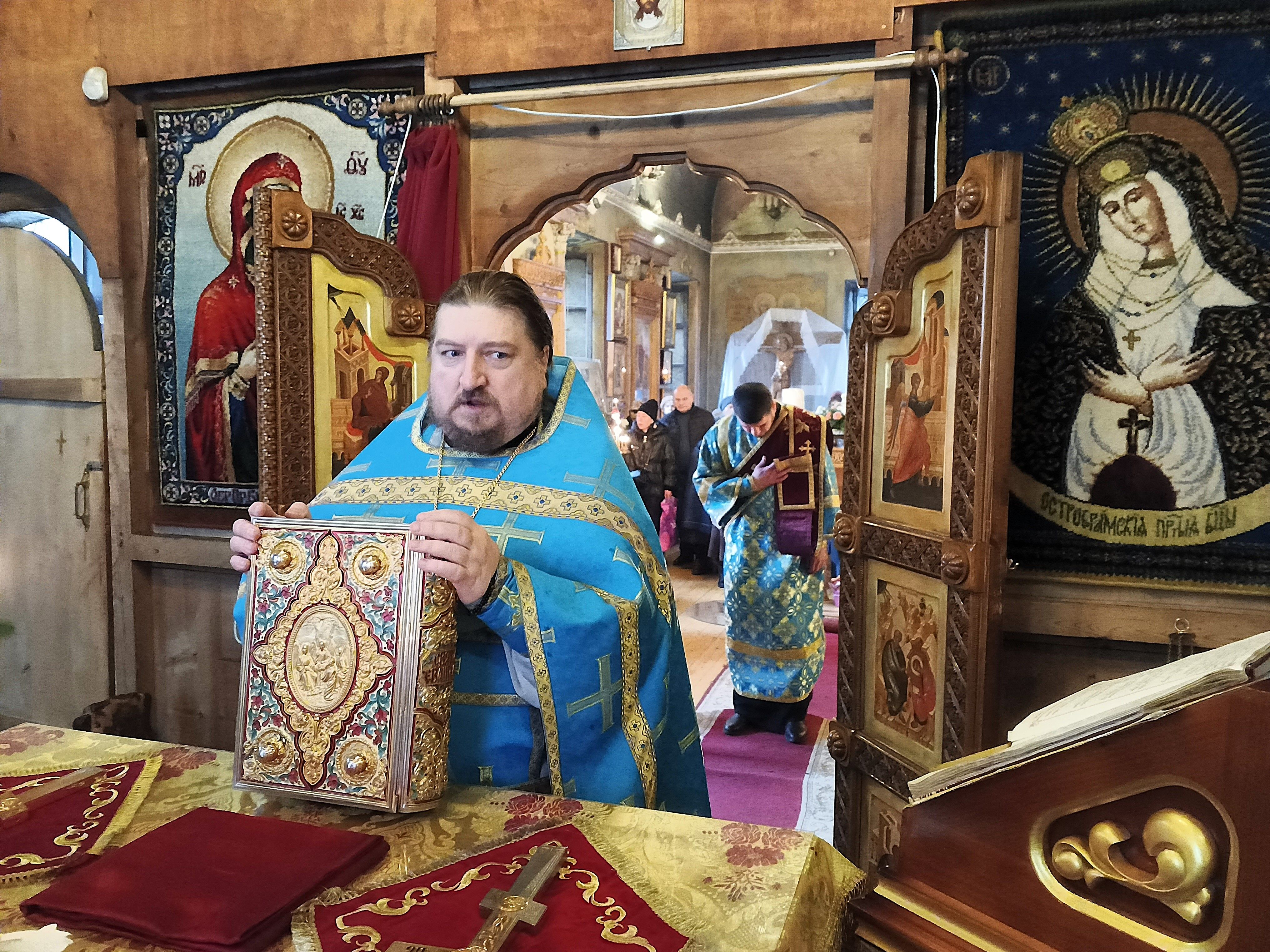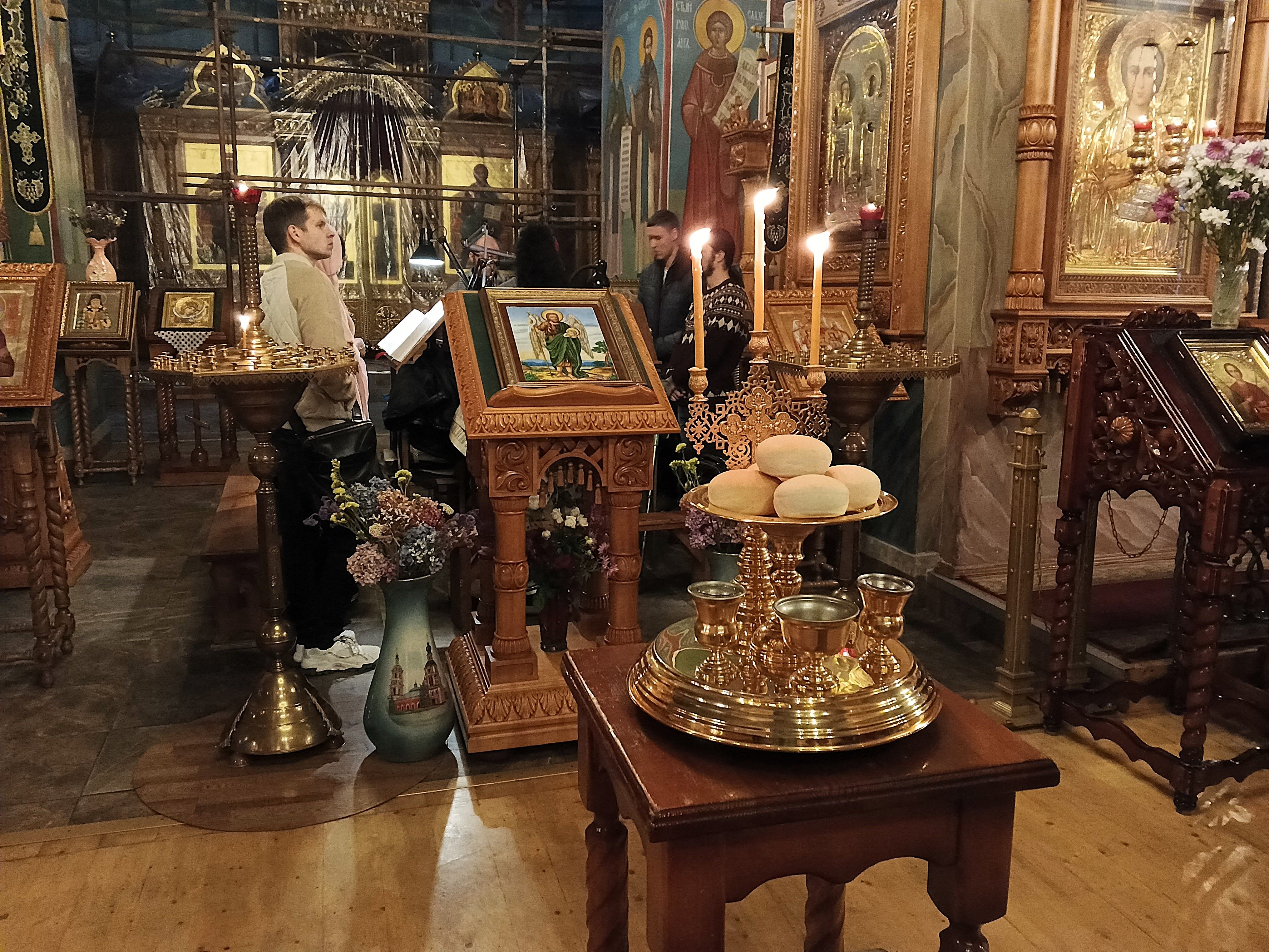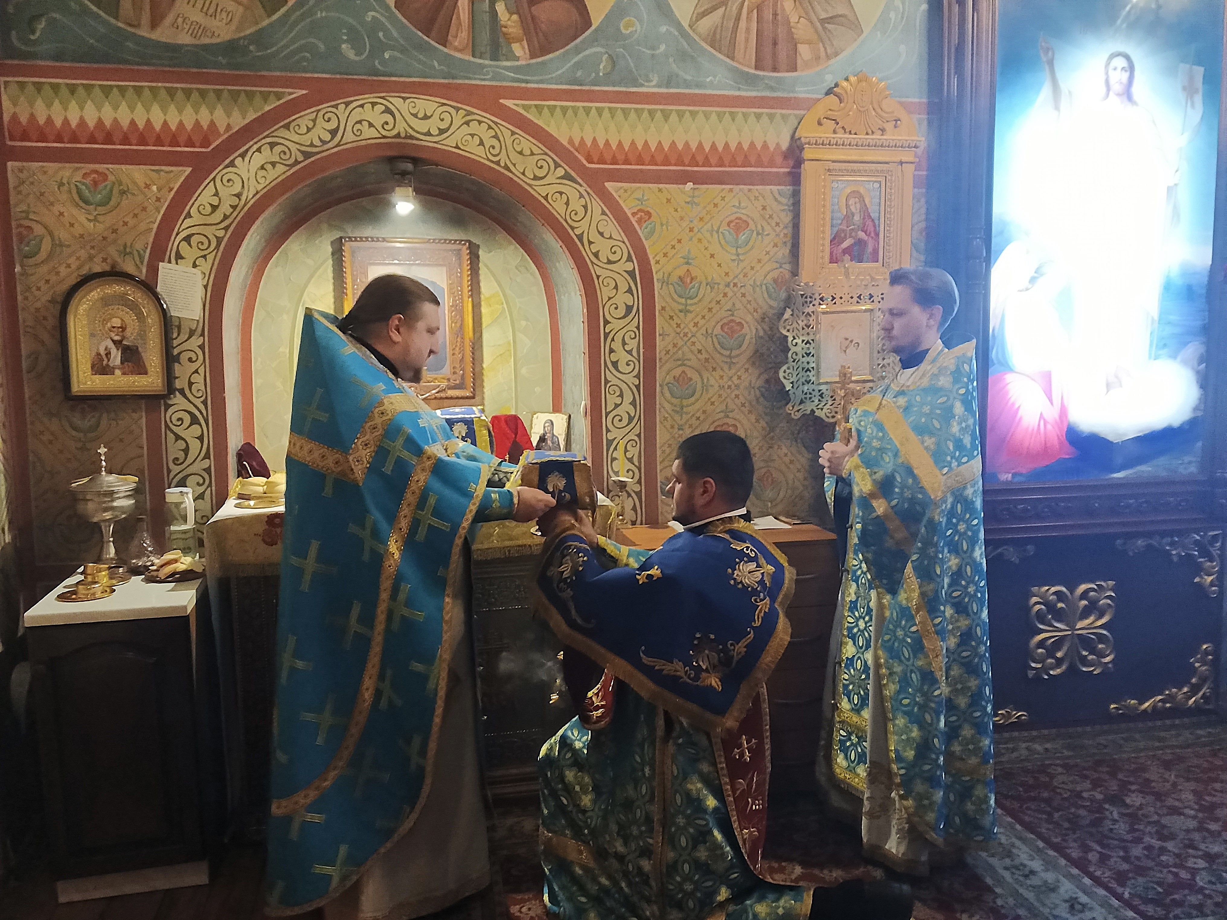 Позднюю литургию, в южном пределе преподобного Сергия Радонежского, совершил игумен Мефодий (Пронькин), в сослужении иерея Анатолия Кукушкина и диакона Виктора Старосты. Исповедь принимал иерей Павел Степанюк.