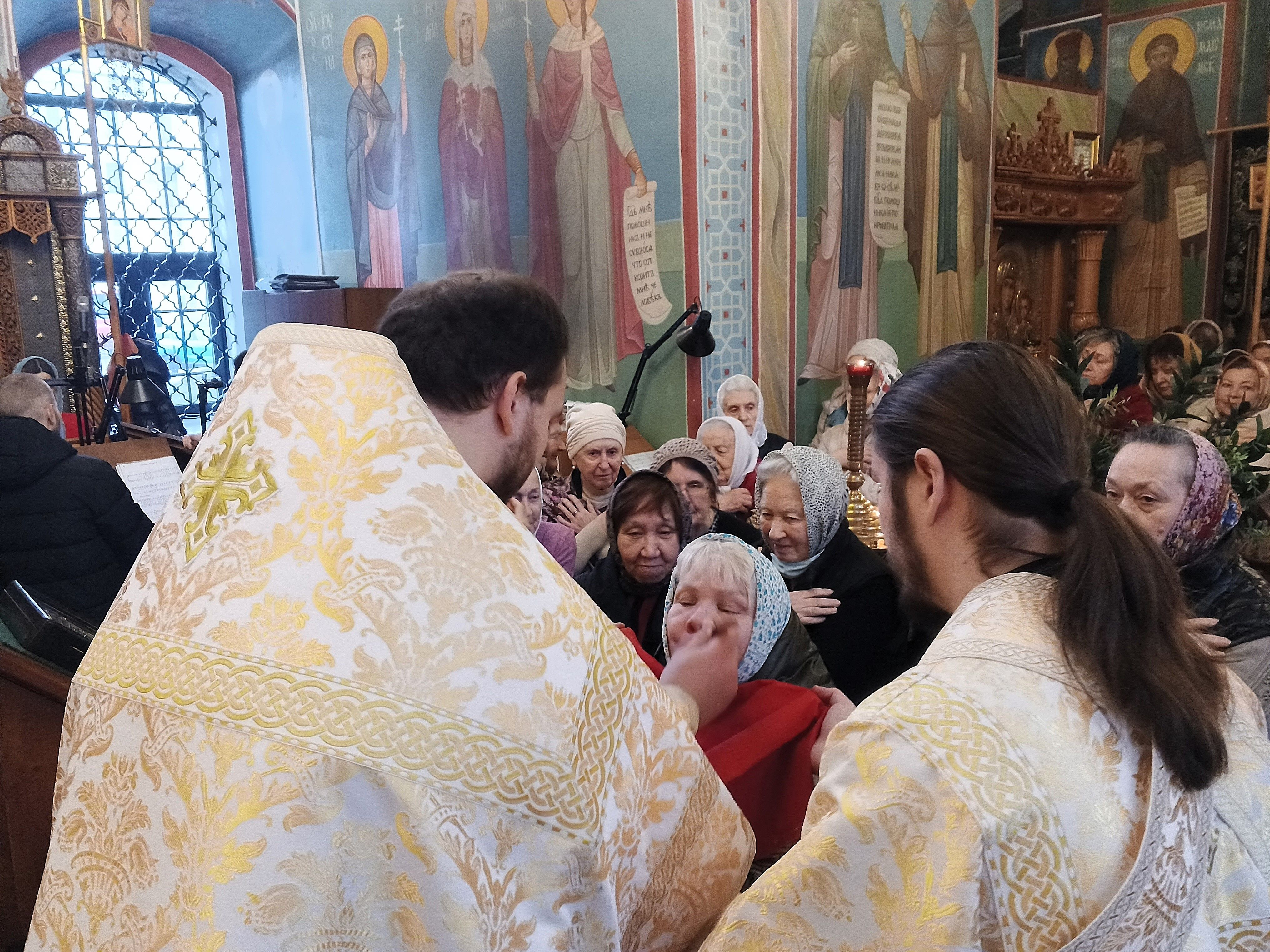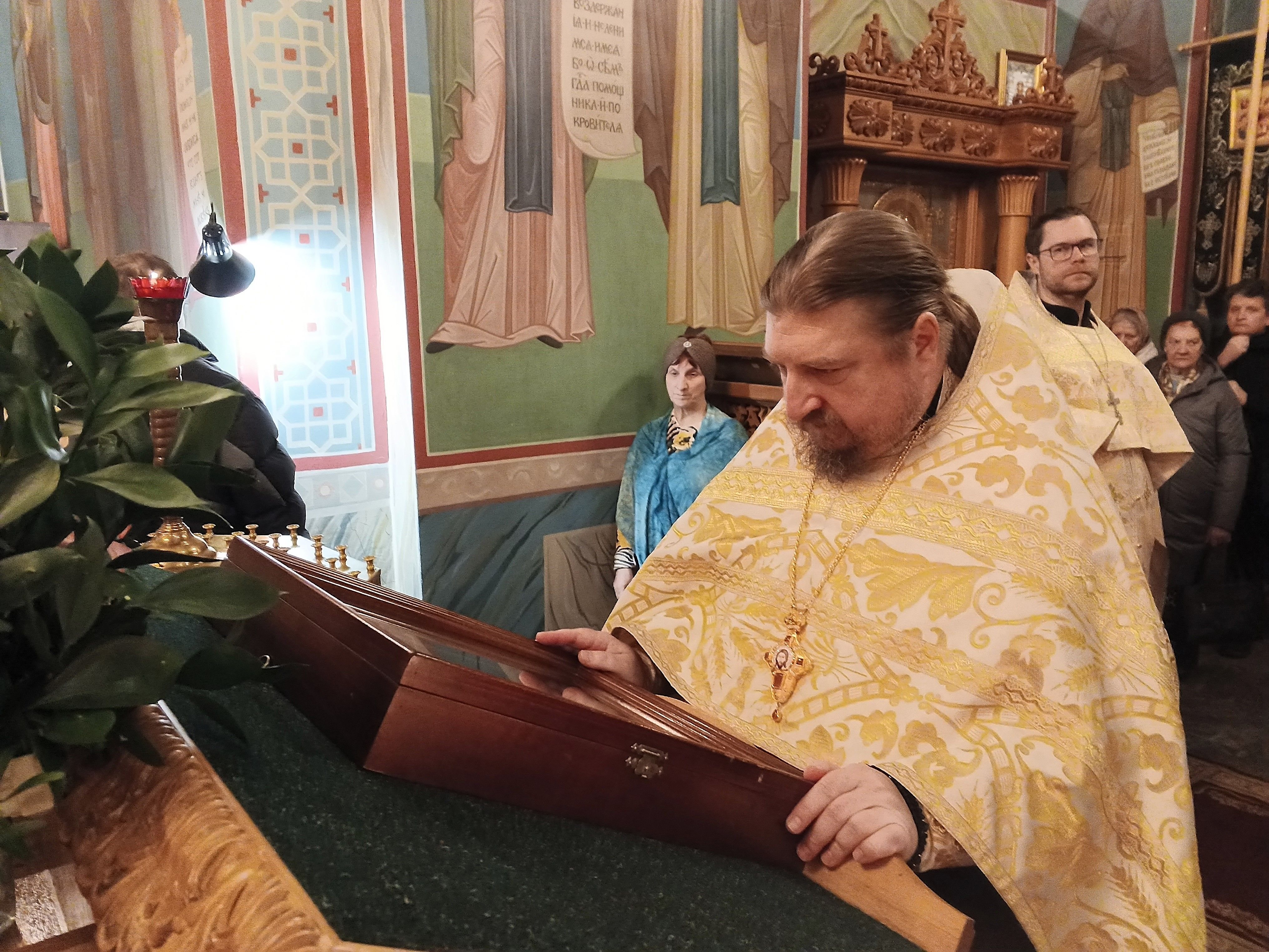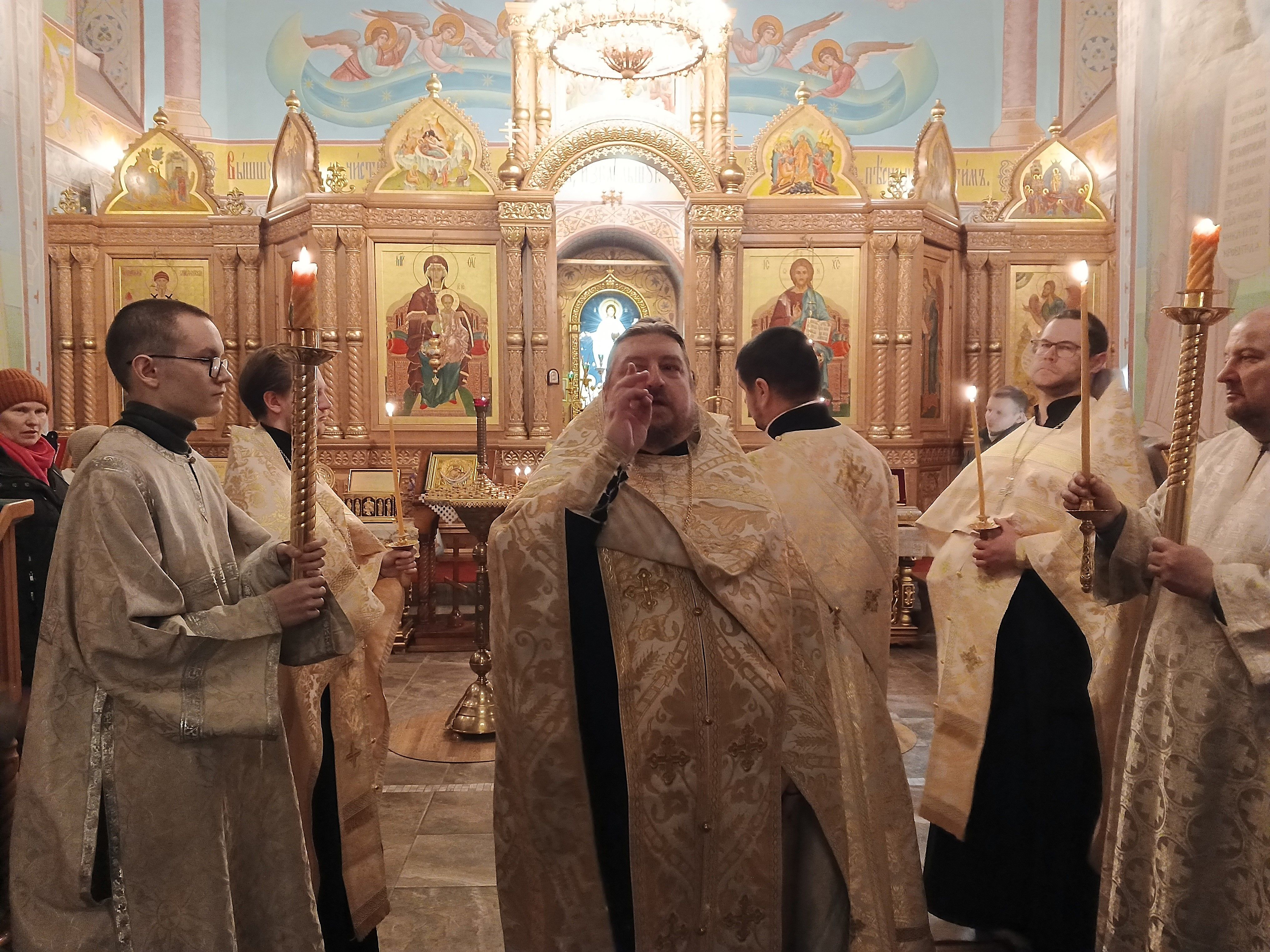 По отпусте литургии был совершен праздничный молебен и отец настоятель обратился к присутствующим с проповедью.