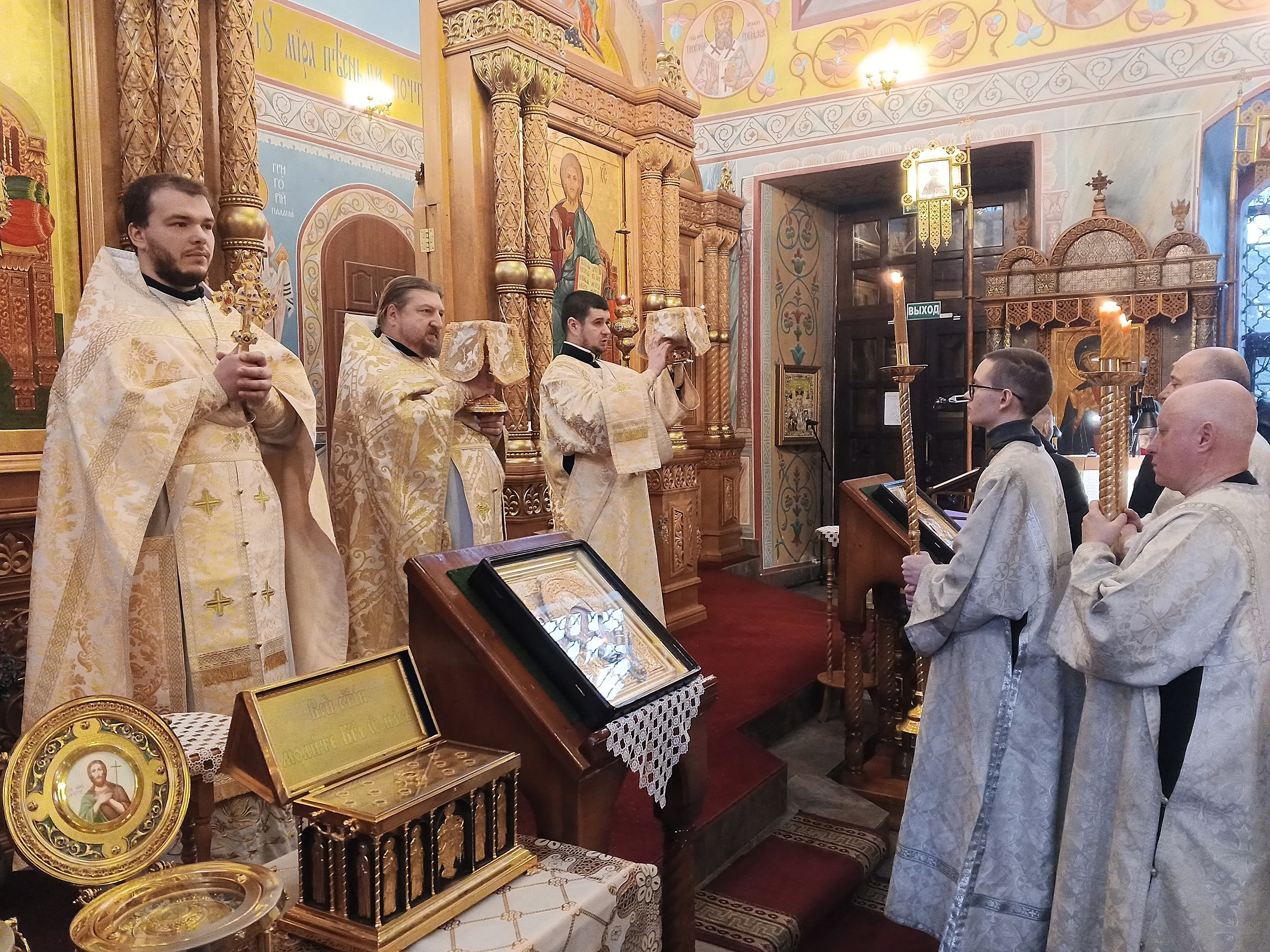Литургию возглавил настоятель храма, игумен Мефодий (Пронькин), сослужили ему иерей Анатолий Абросимов, диакон Виктор Староста и диакон Никита Романовский.