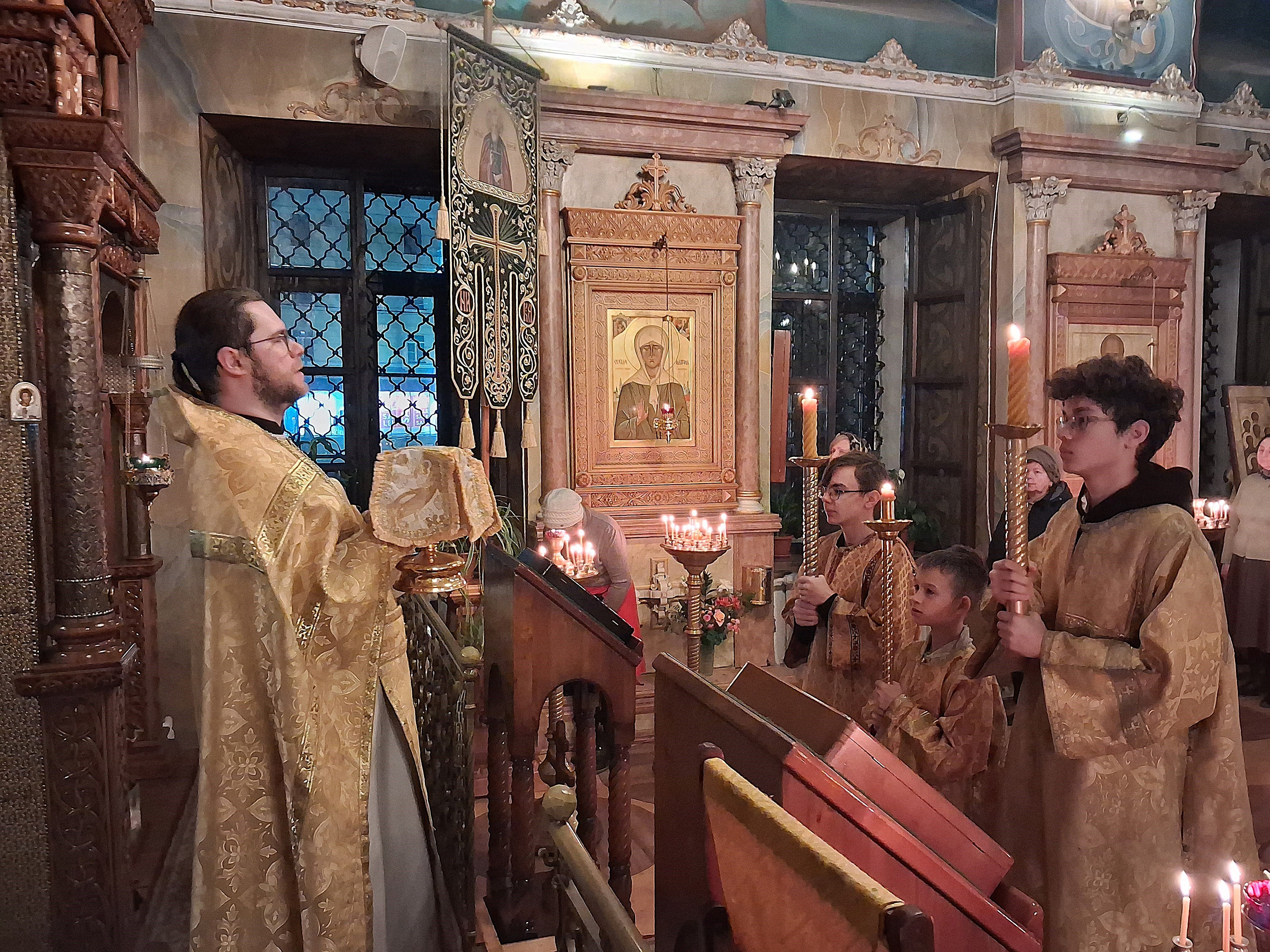 7 декабря, Неделя 26-я по Пятидесятнице, Церковь продолжает праздновать Введение во храм Пресвятой Владычицы нашей Богородицы и Приснодевы Марии и память святой великомученицы Екатерины, в храме святого пророка Иоанна Предтече собором духовенства были совершены воскресные богослужения. Всенощное бдение, совершенное накануне вечером, возглавил иерей Александр Беляев.