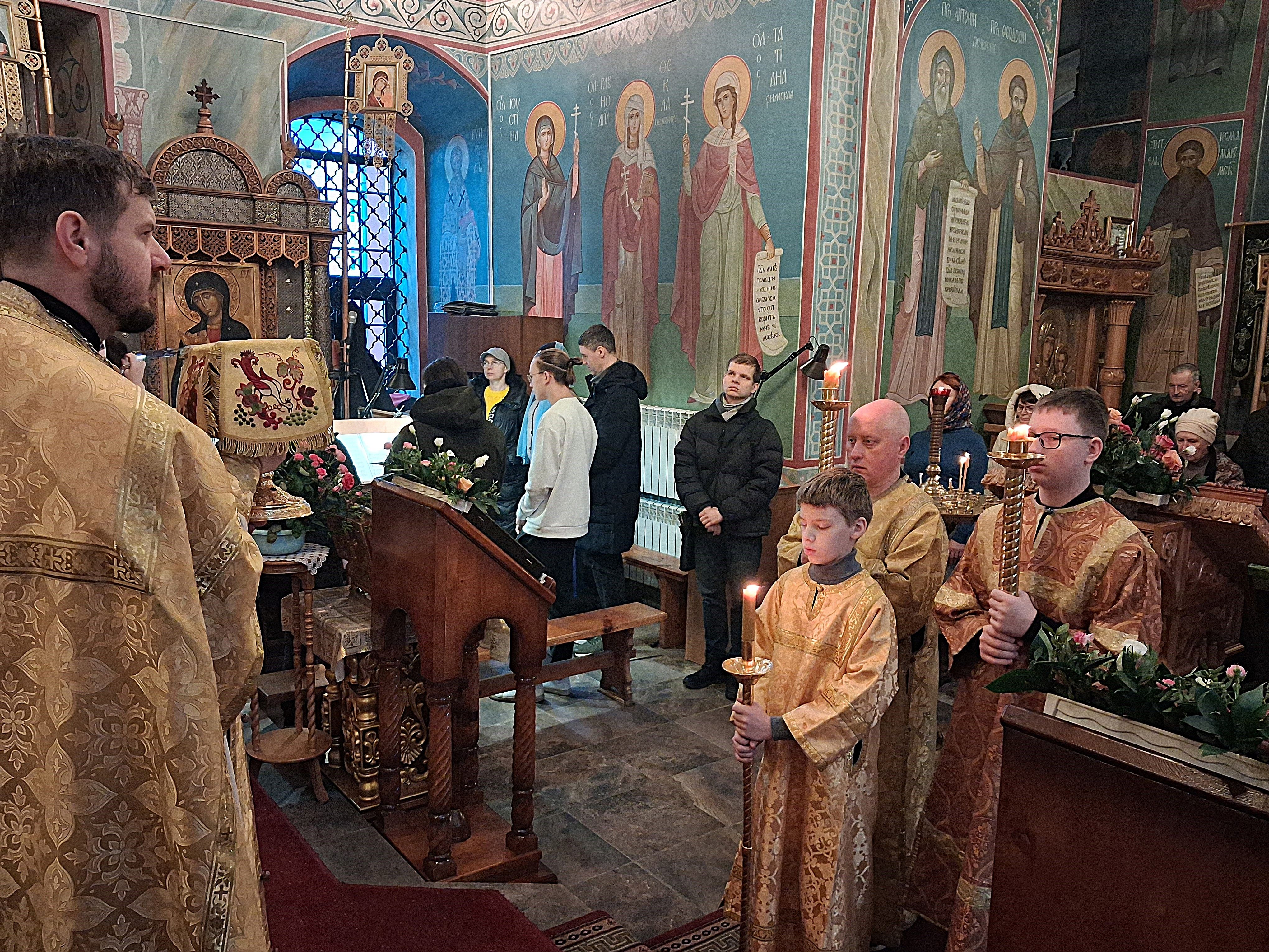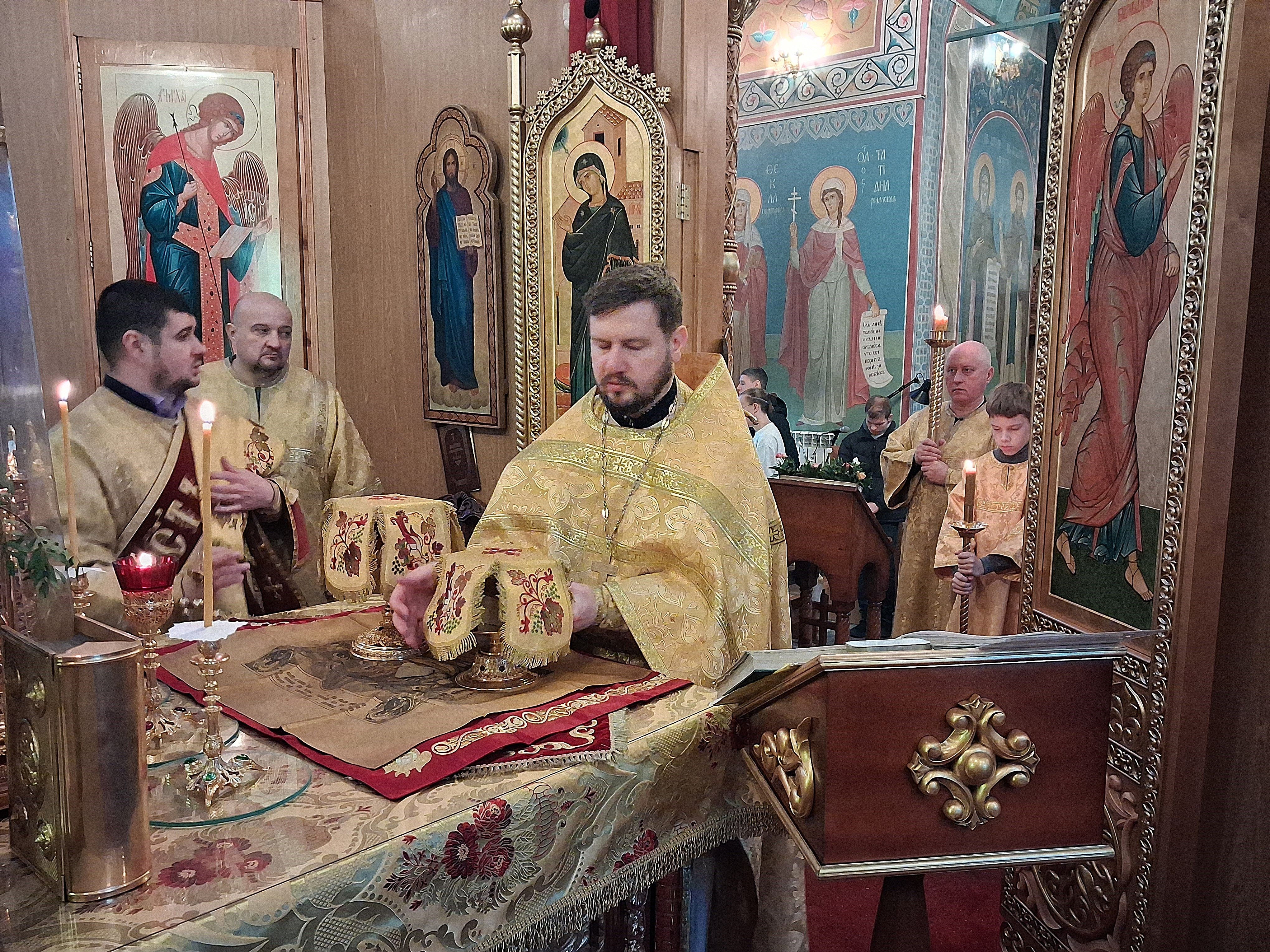 Позднюю литургию совершил иерей Александр Беляев в сослужении диакона Виктора Старосты.
