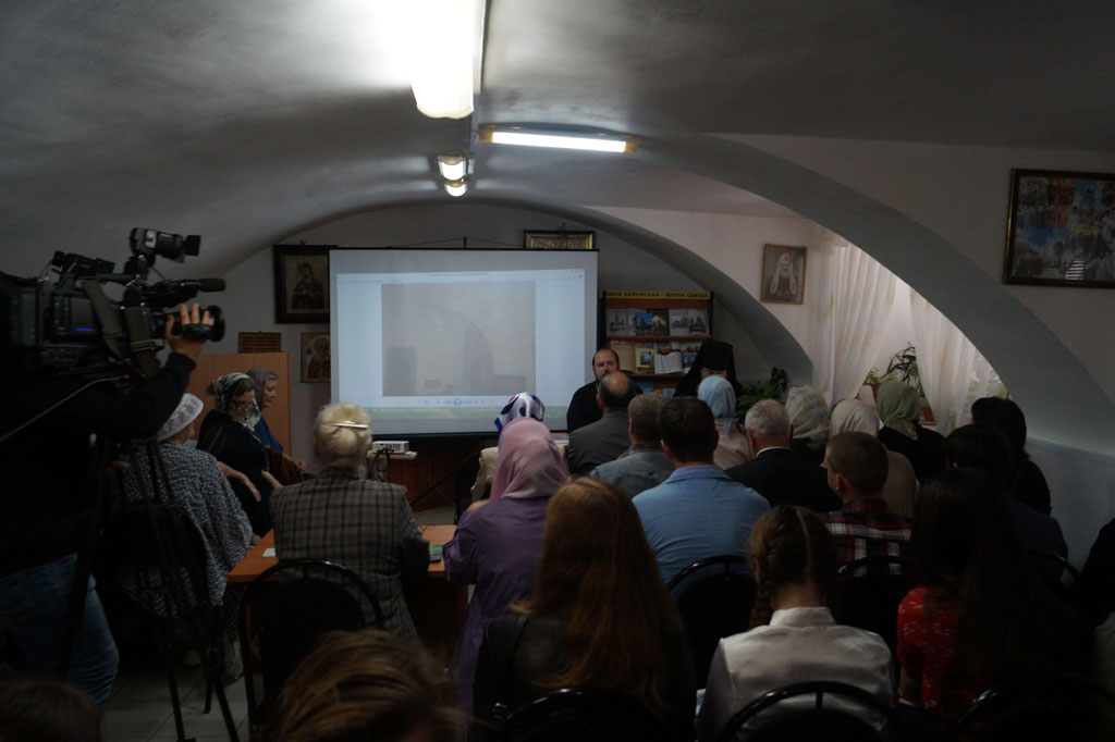 Далее выступали настоятель храма Рождества Пресвятой Богородицы /Никитского/ протоиерей Алексей Пелевин, кандидат исторических наук И. В. Болдин – заведующий отделом Калужского Краеведческого музея, сотрудник Епархиального отдела по изучению истории Епархии в XX веке и канонизации святых Е. В. Метальникова.