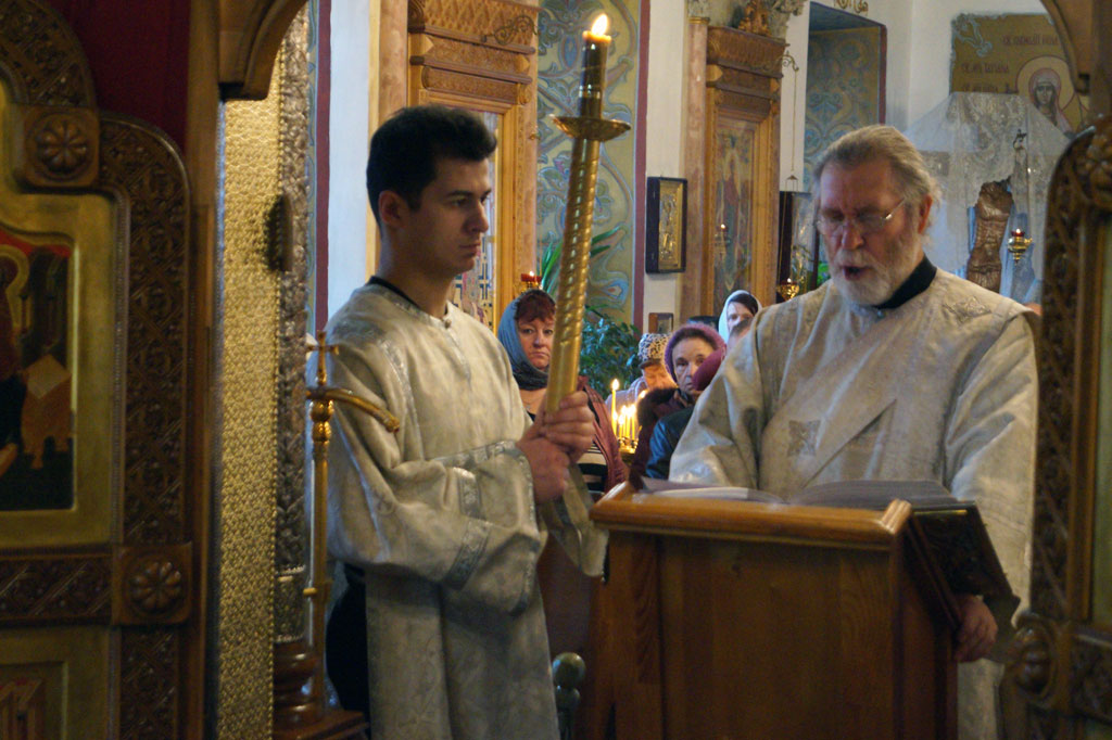 Накануне вечером совершены вечерня и утреня с чином "парастаса" - духовенством были прочитаны Непорочны (17 кафизма).