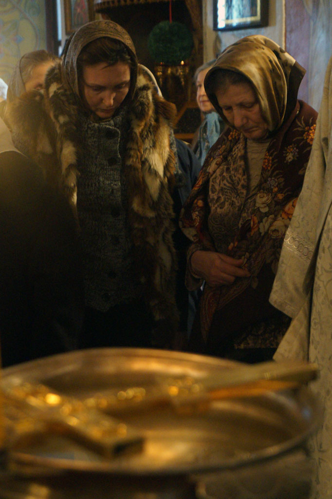 В течении всего дня в храме освящалась вода для раздачи верующим. Первое освящение было совершено в 6 часов утра и вода раздавалась в храме желающим до 7 часов вечера.