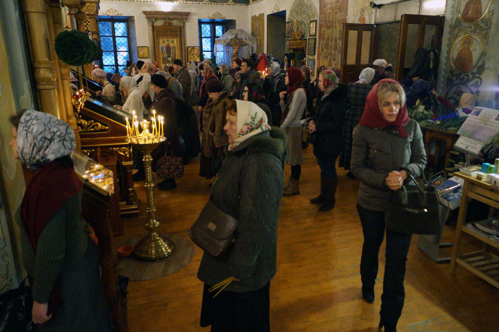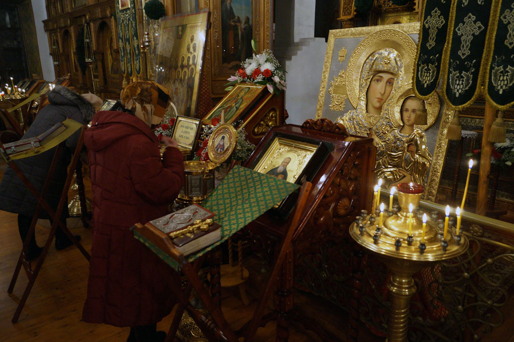 В 7 утра литургию совершал иерей Сергий Бескоровайный при диаконе Викторе Староста. По отпусте литургии был совершен чин славения святым, а затем священник обратился к прихожанам со словами проповеди.