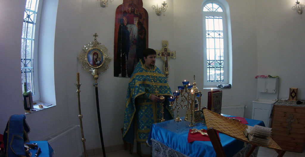 На богослужение в храм собрался костяк прихода, благодаря активным прихожанам приход растет и духовно развивается. Богослужение началось чтением часов, во время которых была совершена проскомидия. По прочтении Евангелия священник произнес краткую проповедь о важности смирения, как условия нахождения под покровом Богородицы. Святых Христовых Тайн приобщилось десять прихожан.