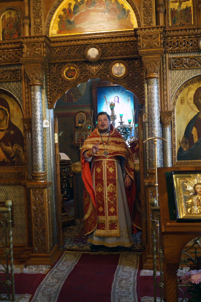 Божественную литургию совершал, по приглашению настоятеля храма, настоятель храма святых бессребреников Космы и Дамиана в Калуге, проректор Калужской духовной семинарии, руководитель отдела по культуре, кандидат богословия, протоиерей Сергий Третьяков, сослужили ему иерей Александр Беляев, протодиакон Василий Савельев, диакон Виктор Староста. Исповедь совершал иерей Евгений Холявко.