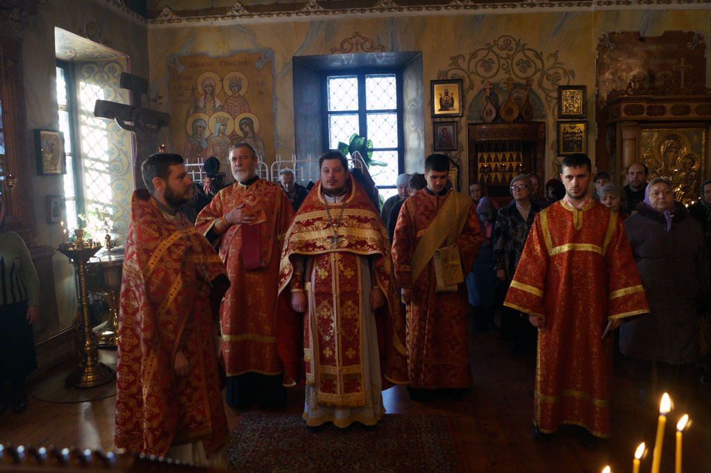 Богослужение возглавил настоятель храма, секретарь Калужской епархии, игумен Мефодий (Пронькин), сослужили ему клирики храма иерей Евгений Холявко, иерей Александр Беляев, протодиакон Василий Савельев и диакон Виктор Староста.