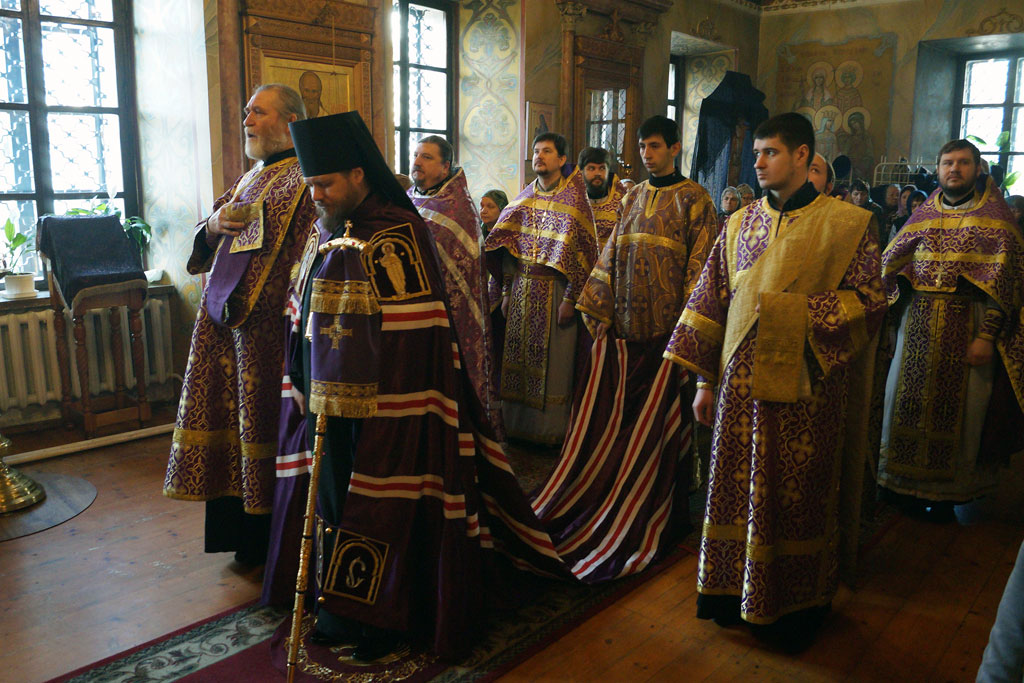 Богослужения начались с часов с чтениями Евангелия, изобразительных, затем была совершена вечерня с чином литургии Преждеосвященных Даров. Его преосвященству сослужил клир храма в полном составе.