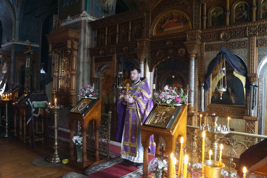В четверг утром иереем Александром Беляевым при диаконе Викторе Староста были совершены уставные утренние богослужения: 3, 6 и 9 часы с чтением Евангелия, изобразительны, вечерня в соединении с литургией Преждеосвященных Даров.