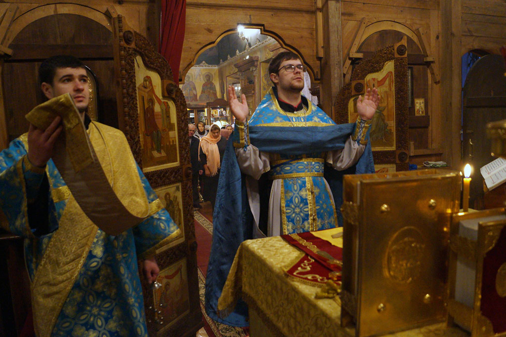 Раннюю Божественную литургию в северном приделе храма в честь святых Гурия, Самона и Авива совершал иерей Павел Степанюк при диаконе Викторе Староста. Причастилось 96 прихожан. По отпусте был совершен чин славления.