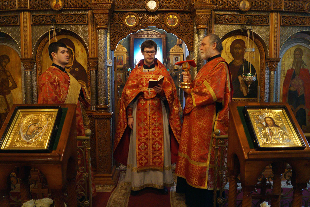 Утром литургию совершал иерей Павел Степанюк при протодиаконе Василии Савельеве и диаконе Викторе Староста. Исповедь принимал иерей Евгений Холявко.