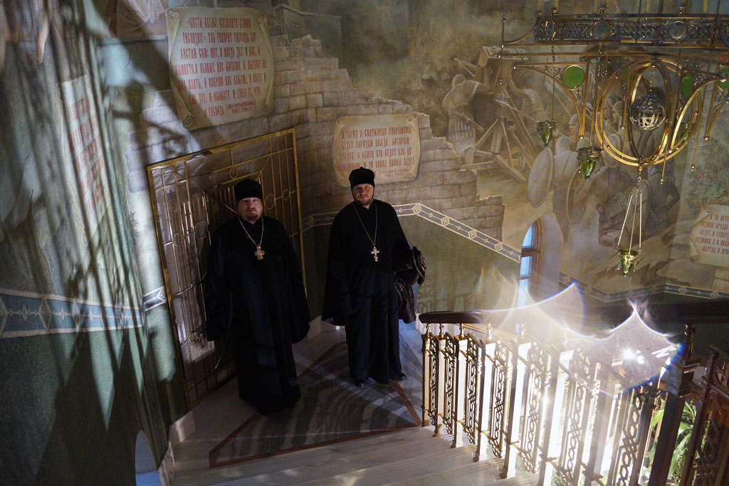 Владыка Тихон, поблагодарив присутствующих за совместную молитву за Литургией, кратко рассказал об истории 600-летней Сретенской обители, которая одновременно может служить примером древнего и нового монастыря, поскольку в годы богоборчества была практически уничтожена и возрождалась по благословению, молитвам и при всемерной поддержке приснопамятного архимандрита Иоанна (Крестьянкина). Его Преосвященство поделился с собранием заветами старца, выполнение которых необходимо каждому монастырю, налаживающему духовную жизнь. В первую очередь, это неукоснительное совершение богослужений, Божественной литургии. Владыка Тихон на примере своего монастыря также перечислил другие важные моменты духовной жизни: игумен и духовник в идеале должны пребывать в одном лице (в силу большой занятости игумена могут быть и другие духовники, но и при этом единство игумена и братии должно быть нерушимо); желательно соблюдение регулярного совместного и частого причащения всей братии. По поводу пастырского окормления в монастыре Его Преосвященство заметил, что не считает возможным придавать ему исключительное значение и считает, что задача исповедующих и прихожан обители − совместно искать волю Божию.