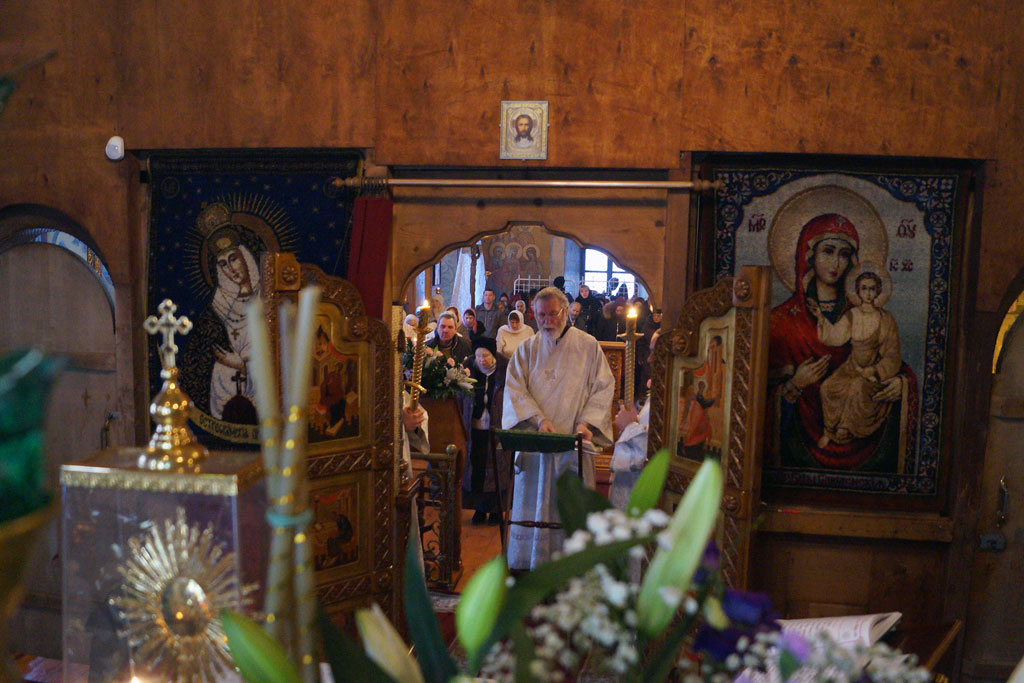 По сугубой ектении читалась моитва о мире на Украине, и возносились молитвы о болящих.
