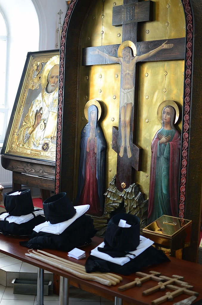 По окончании великого повечерия владыка Климент совершил чин пострига и произнес новопостриженным монахам пастырское наставление.
