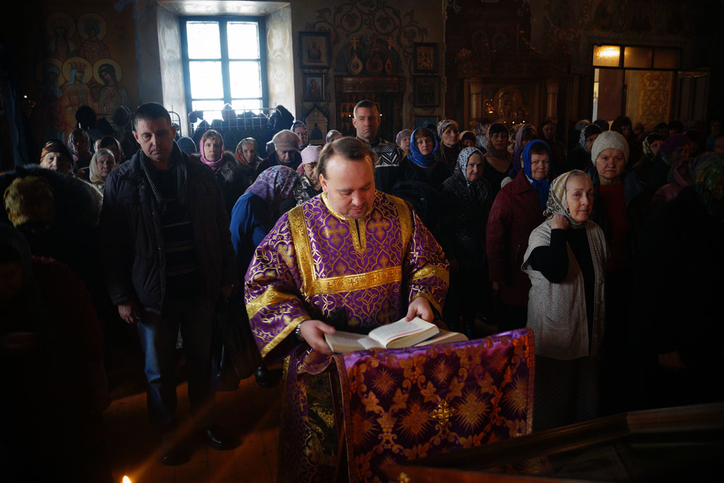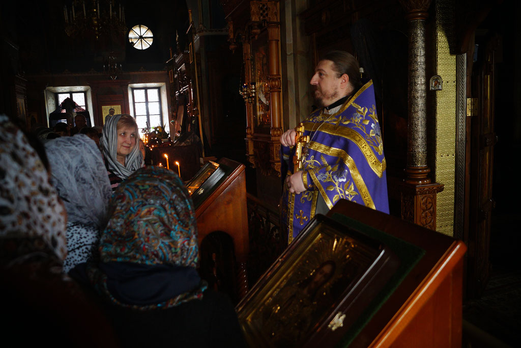 Накануне вечером были совершены великое повечерие и полиелейная утреня, в сам день праздника часы с чтением Евангелий, изобразительны и вечерня в соединении с литургией Преждеосвященных Даров. Предстоял игумен Мефодий (Пронькин), настоятель храма, отпраздновавший накануне, в день обретения мощей блаженной Матроны Московской, двадцатилетие со дня своей священнической хиротонии. Сослужили ему: иерей Сергий Бескоровайный, настоятель Петропавловского храма, иерей Евгений Холявко, иерей Александр Беляев, иерей Кирилл Кислов, иерей Павел Степанюк, протодиакон Василий Савельев. Таинство Исповеди совершал иерей Павел Рогожин.
