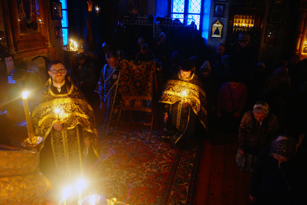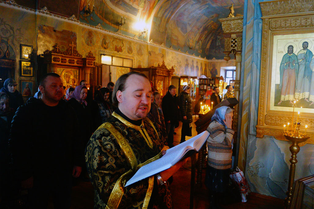 В среду вечером, великопостная утреня была совершена настоятелем храма игуменом Мефодием (Пронькиным) в сослужении иерея Евгения Холявко, иерея Александра Беляева, иерея Павла Степанюка, протодиакона Василия Савельева и диакона Виктора Староста. По прочтении жития Марии Египетской, духовенством был прочитан Великий канон Андрея Критского целиком.