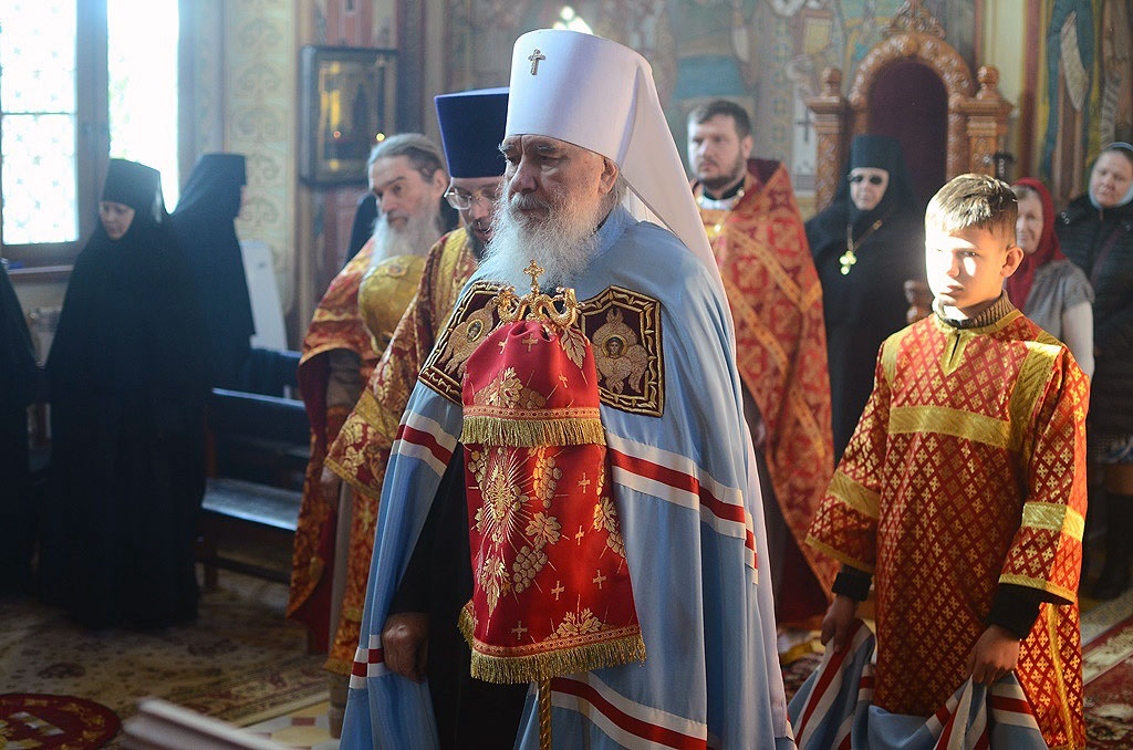 На малом входе, владыка Климент вручил игумении Феофиле за труды, понесенные в течение многолетнего служения в качестве настоятельницы монастыря и в соответствии с указом Святейшего Патриарха Московского и всея Руси Кирилла, крест с украшениями. По сугубой ектении возносилась молитва о мире на Украине.