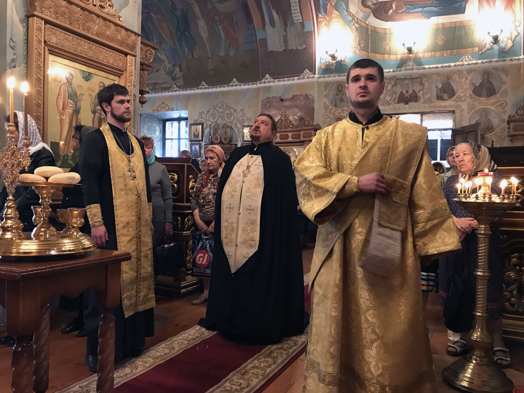 В храме святого пророка Иоанна Предтечи были совершены торжественные богослужения начавшиеся накануне вечером всенощным бдением с литией и паримиями собравшем в стенах храма 140 прихожан.