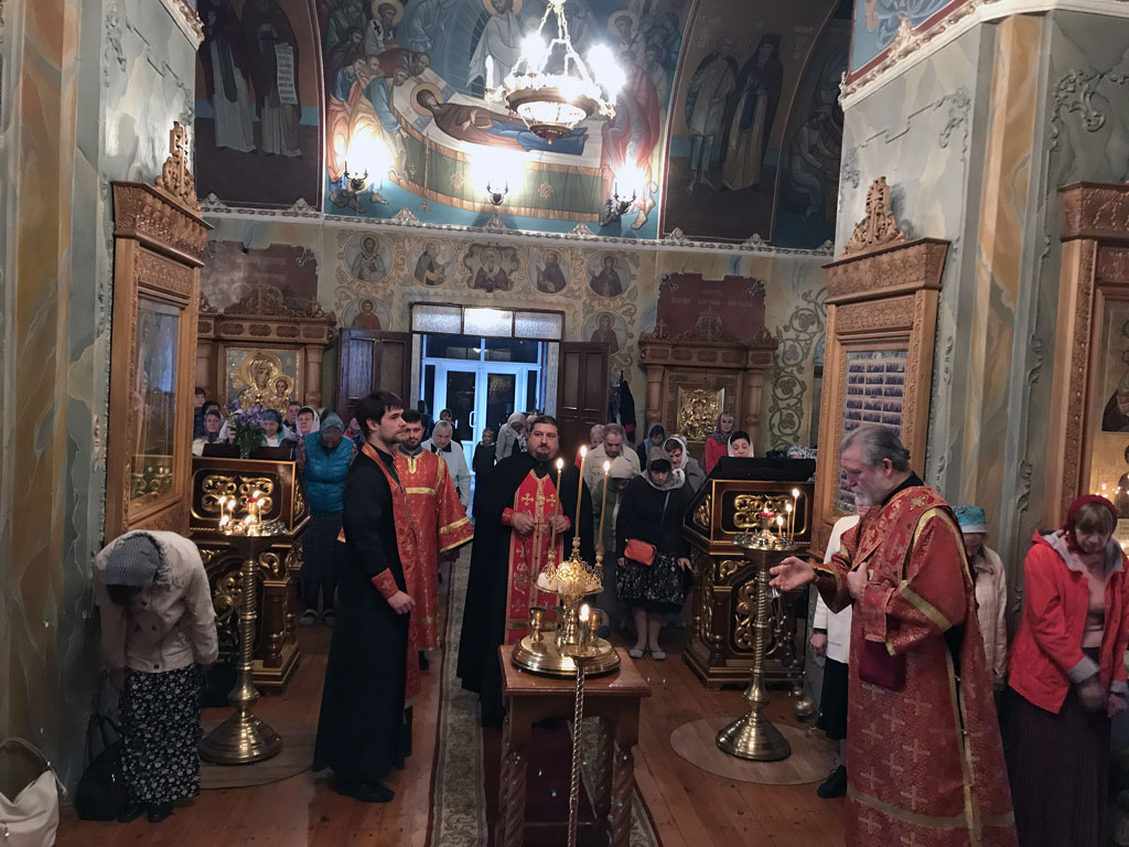 В Предтеченском храме накануне вечером собором духовенства было совершено всенощное бдение с литией и чтением паримий, собравшее в стенах храма полторы сотни прихожан.