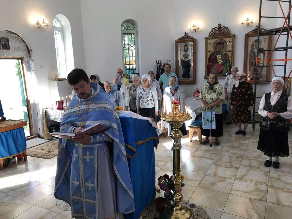 Божественную литургию совершал иерей Евгений Холявко, по обыкновению богослужебный день начинается с утренних молитв в восемь часов утра, в это время священник совершает в алтаре проскомидию, а на часах совершается таинство Исповеди. Литургия начинается около девяти часов.