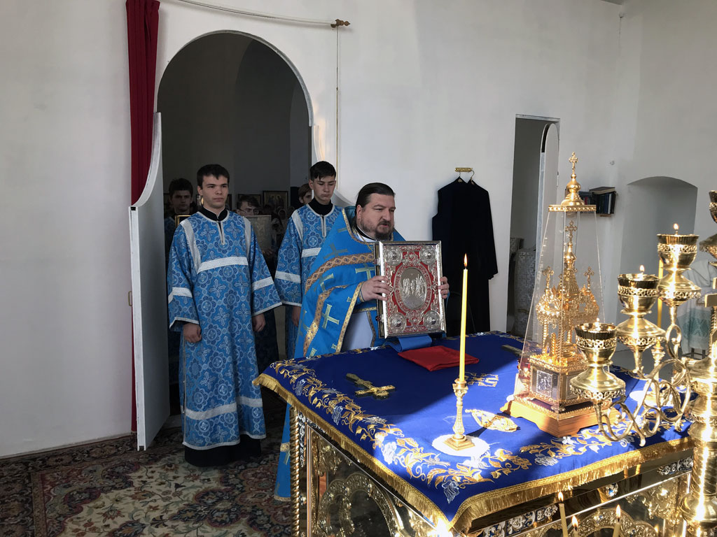 После Божественной литургии митрополит Калужский и Боровский Климент и сослужащее духовенство совершили славление празднику, пропели тропарь, кондак и величание Пресвятой Владычице нашей Богородице и Приснодеве Марии.