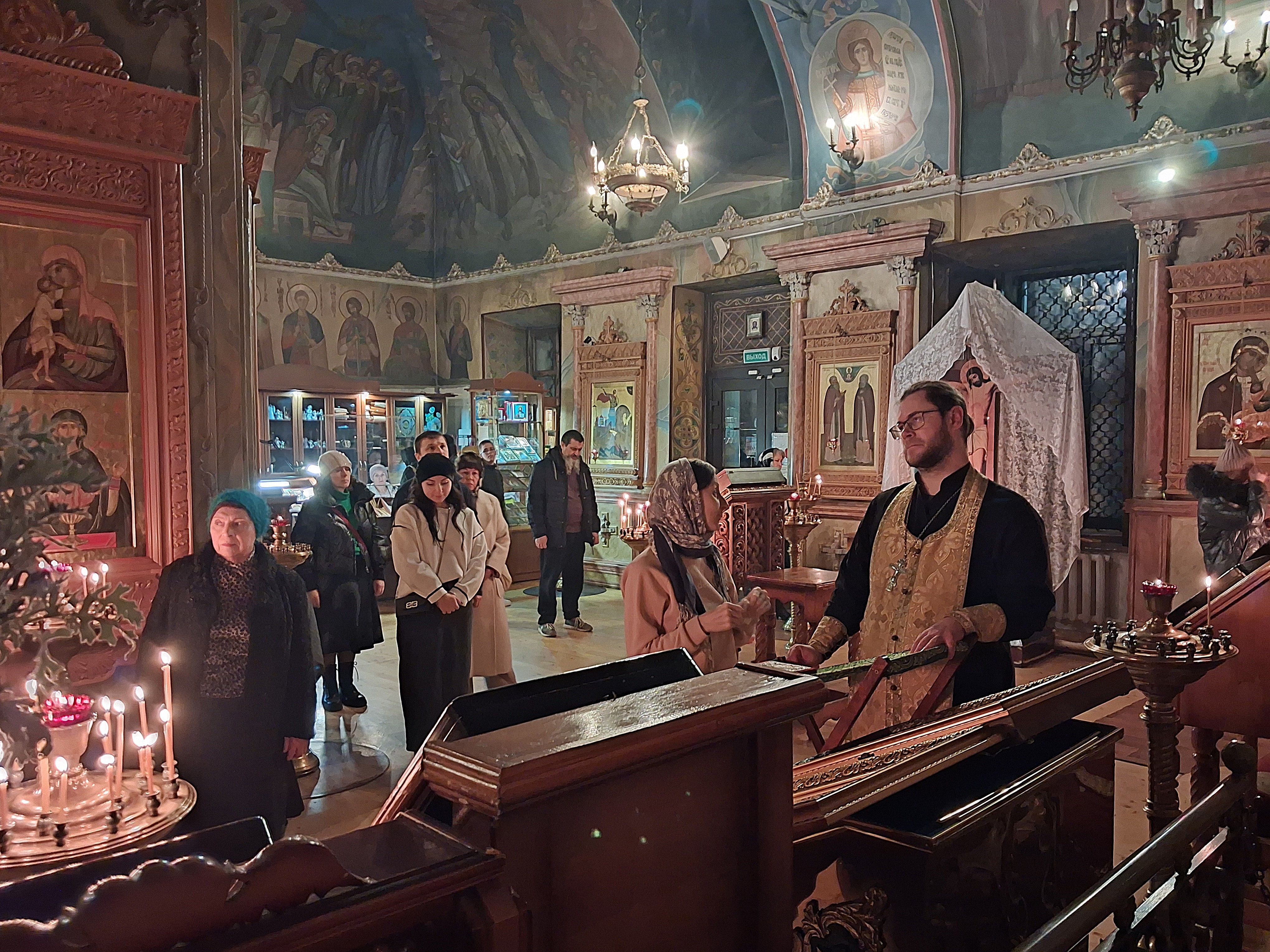 7 декабря, Неделя 26-я по Пятидесятнице, Церковь продолжает праздновать Введение во храм Пресвятой Владычицы нашей Богородицы и Приснодевы Марии и память святой великомученицы Екатерины, в храме святого пророка Иоанна Предтече собором духовенства были совершены воскресные богослужения. Всенощное бдение, совершенное накануне вечером, возглавил иерей Александр Беляев.