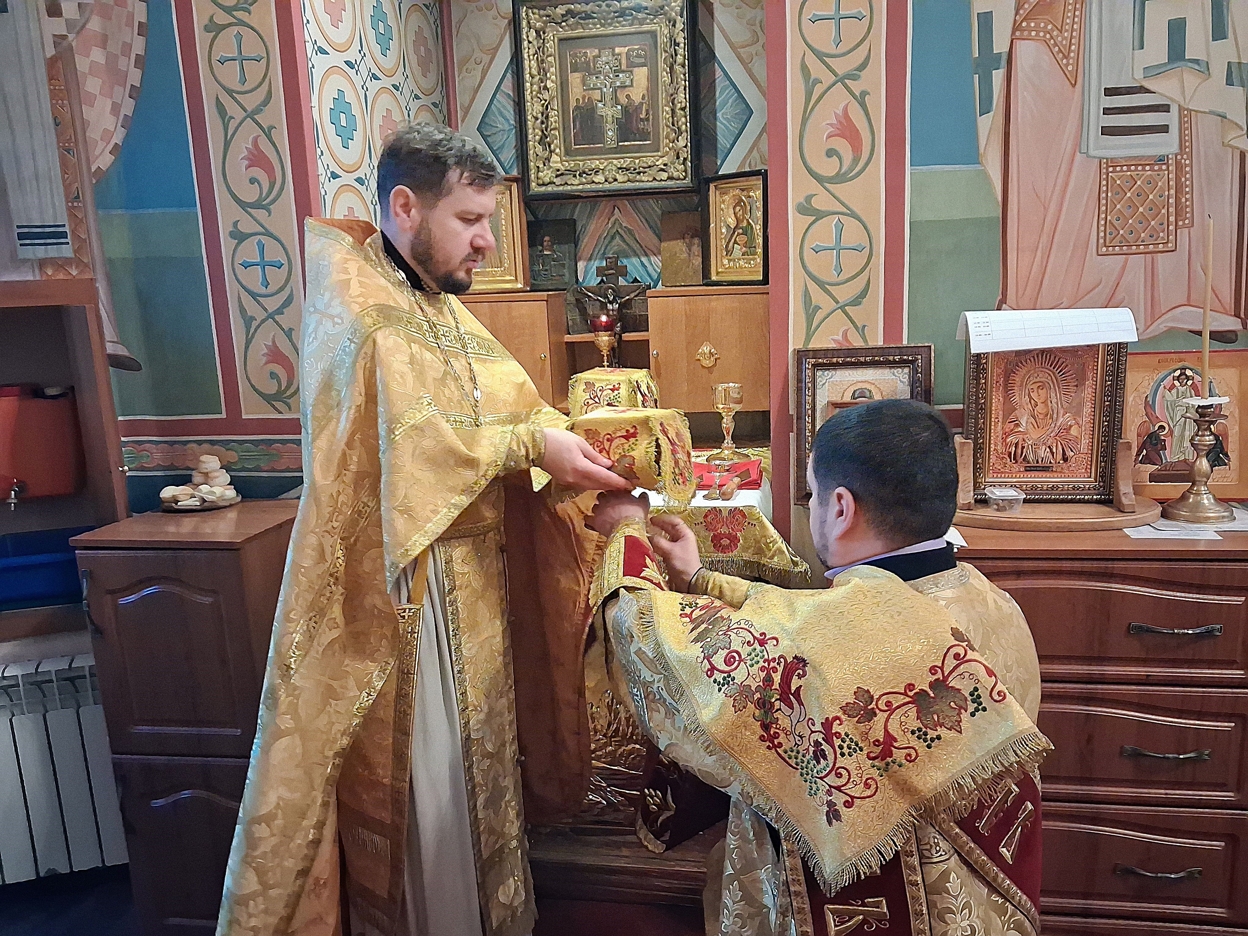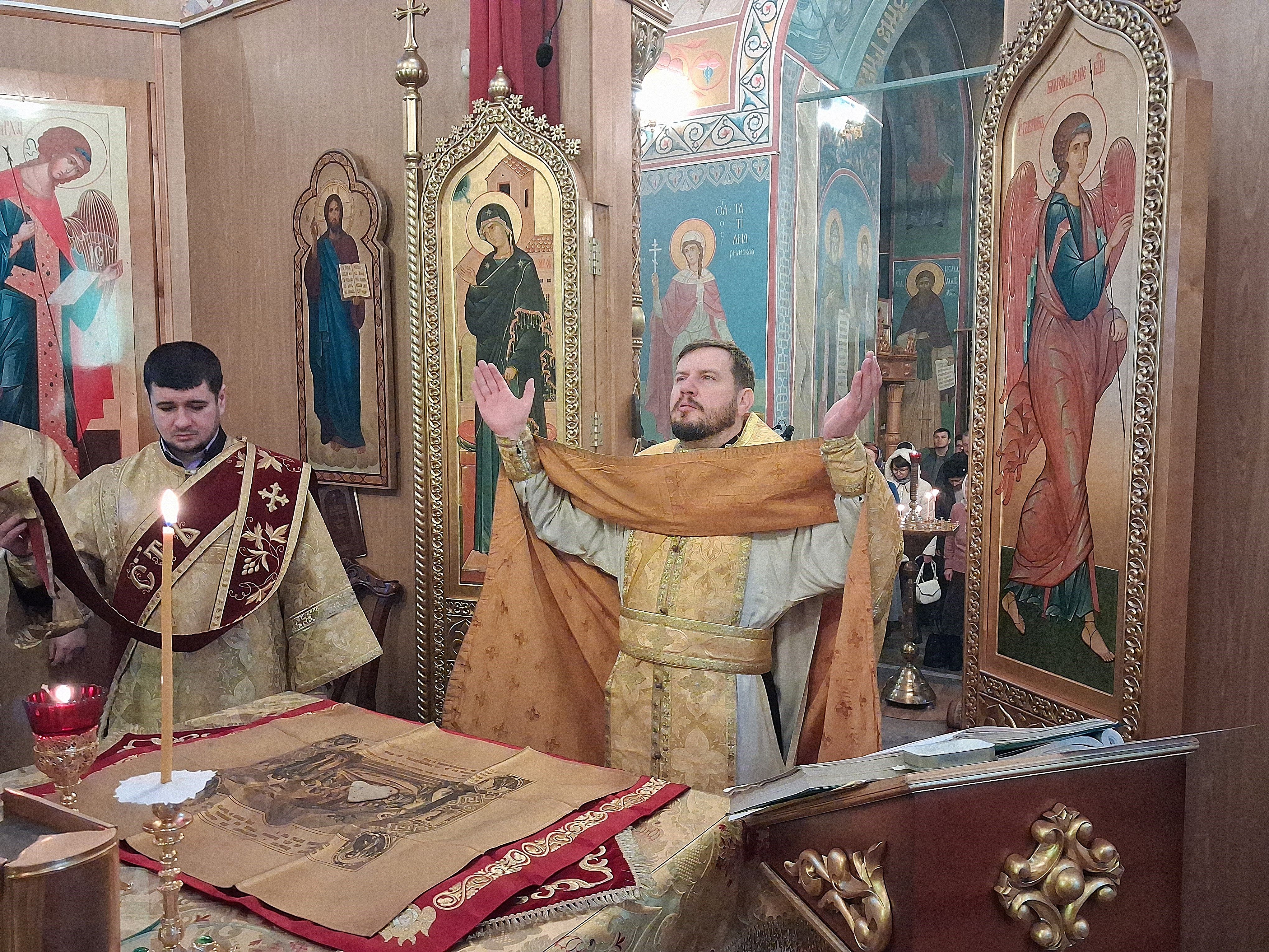 Позднюю литургию совершил иерей Александр Беляев в сослужении диакона Виктора Старосты.