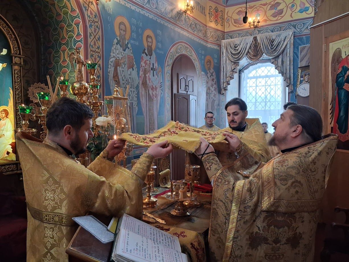 Позднюю литургию возглавил игумен Мефодий (Пронькин), сослужили ему протоиерей Максим Немыченков, иерей Александр Беляев и диакон Виктор Староста.