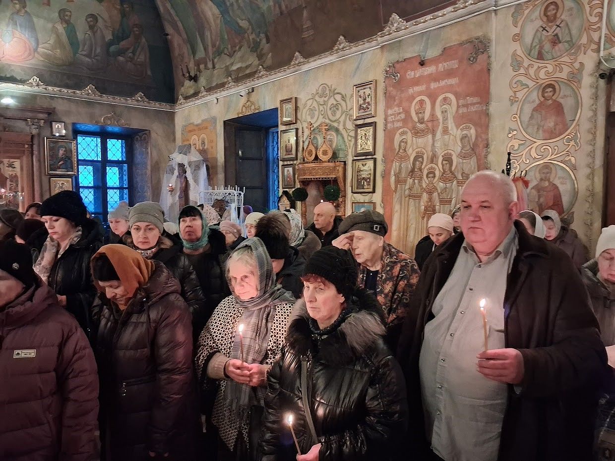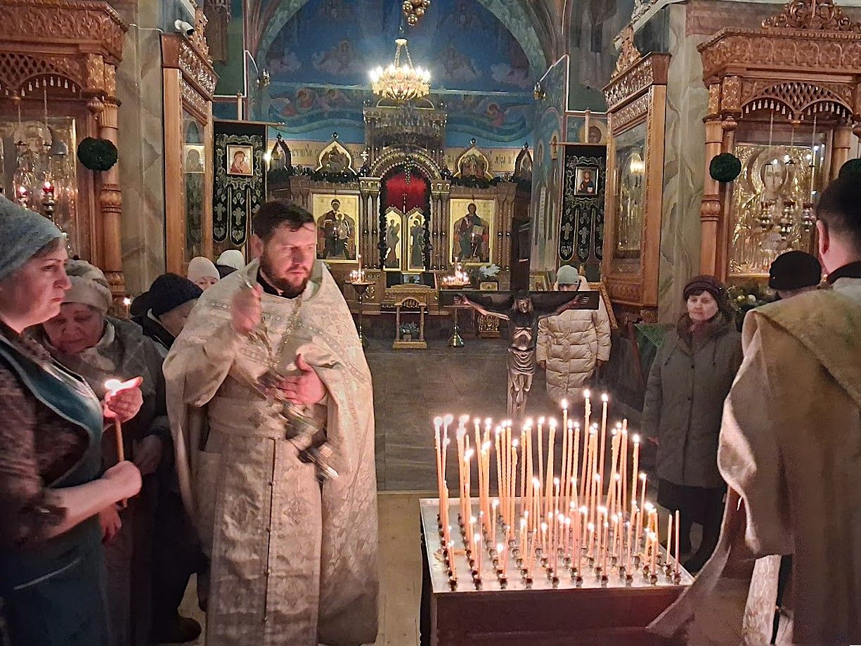 Заупокойные богослужения, мясопустной, родительской субботы в храме святого пророка Иоанна Предтечи в Калуге начались накануне вечером с вечерни и утрени с чином парастаса.