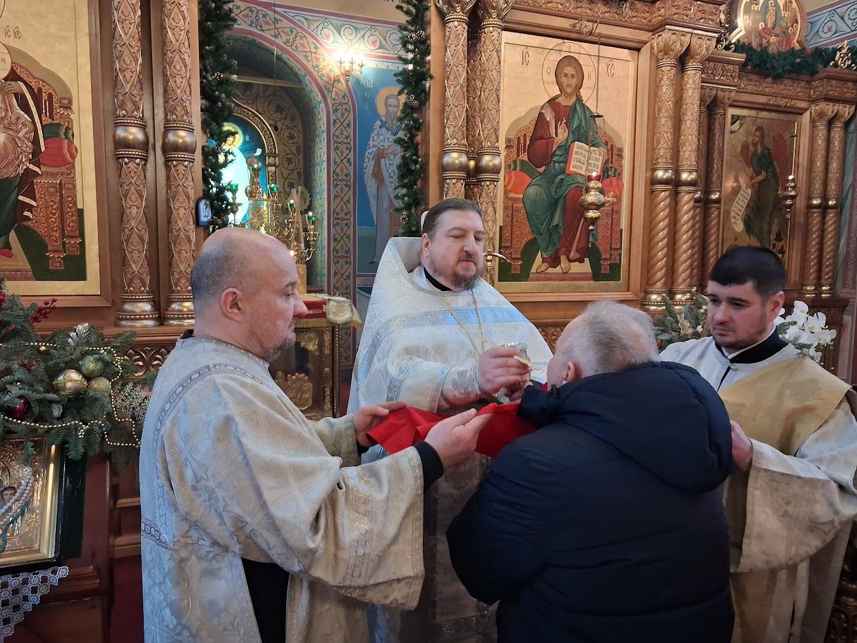 Позднюю литургию возглавил игумен Мефодий (Пронькин) в сослужении иерея Павла Степанюка и диакона Виктора Старосты.