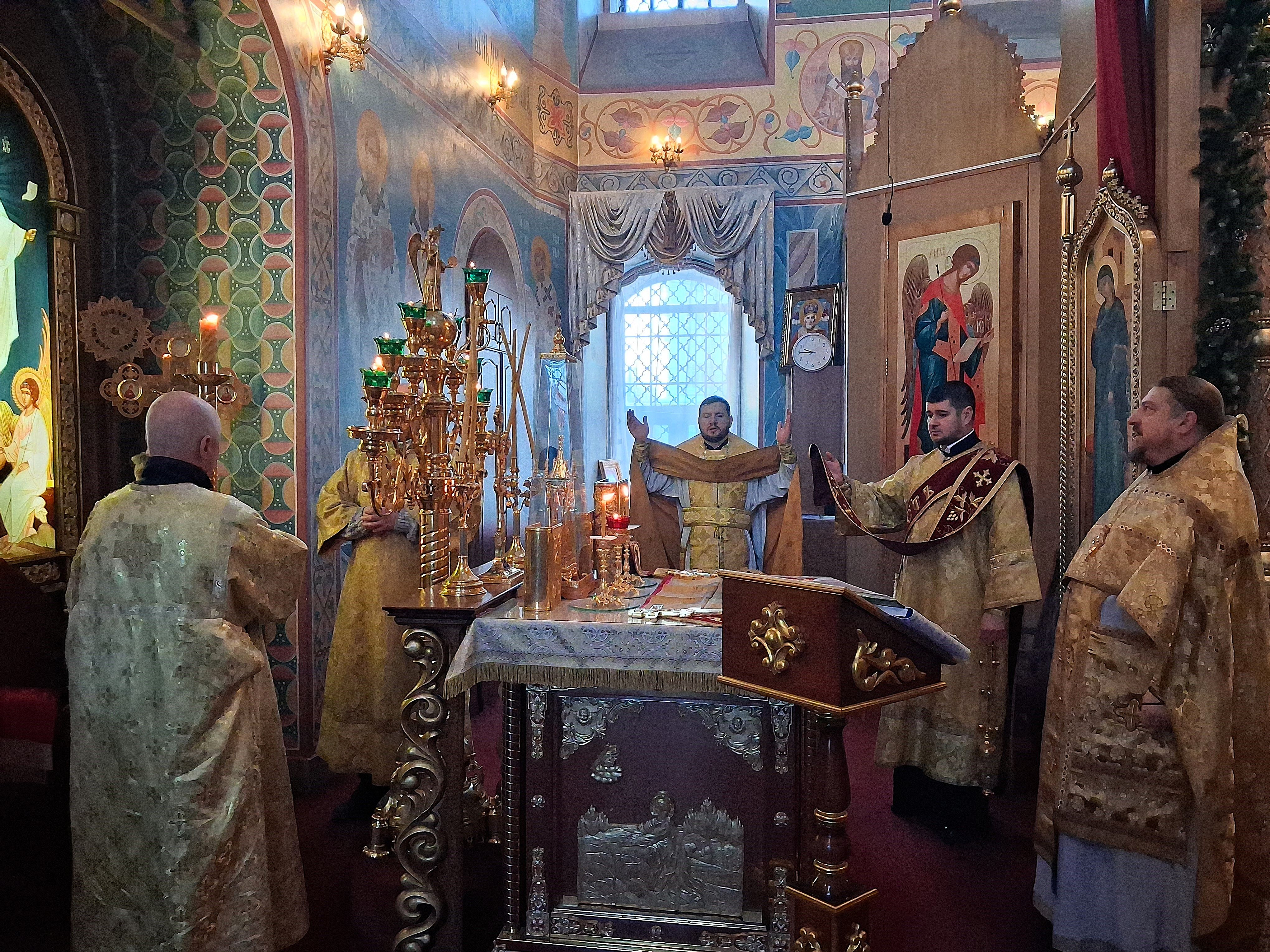 Раннюю литургию, в южном приделе Сергия Радонежского, совершил иерей Павел Степанюк помогал ему диакон Никита Романовский.