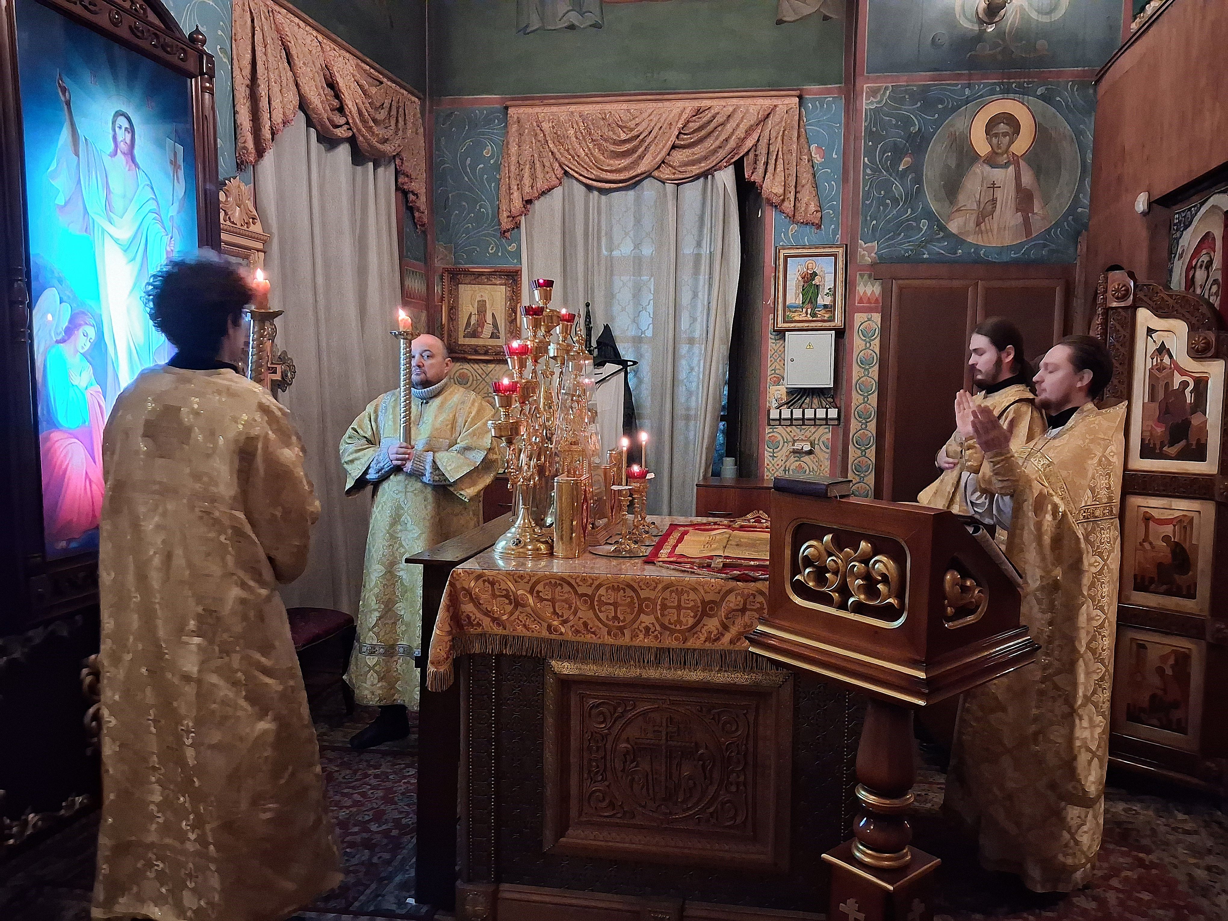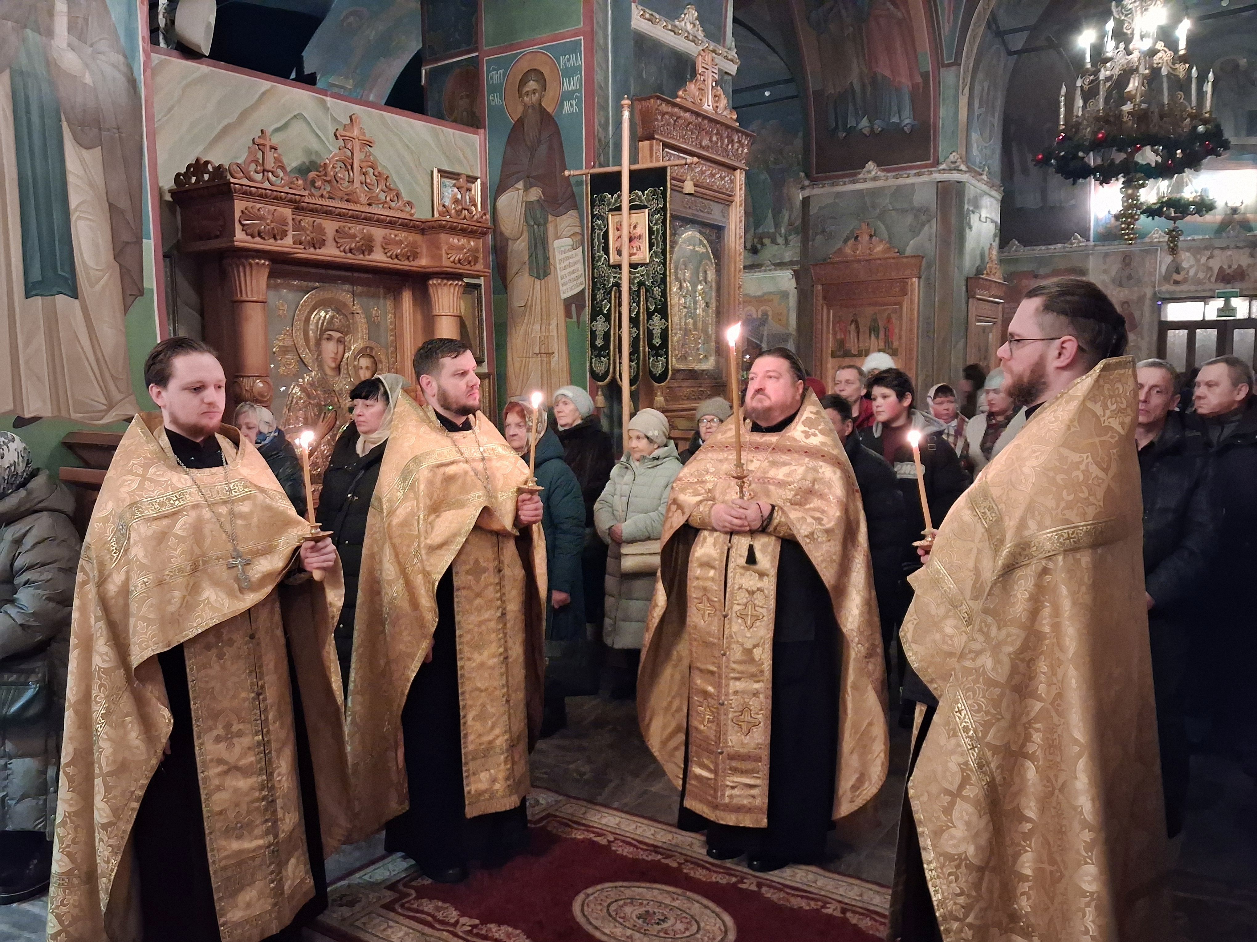 1 февраля, Неделя о мытаре и фарисее. В храме святого пророка Иоанна Предтечи были совершены Воскресные Богослужения - всенощное бдение, совершенное соборно клиром храма, возглавил настоятель храма, игумен Мефодий (Пронькин).