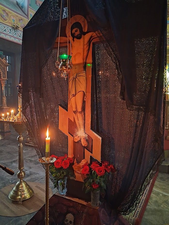 В конце службы все верующие с благоговением подходят поклониться перед Распятием, Крестом Христовым, который на Пассии выносится на середину храма.