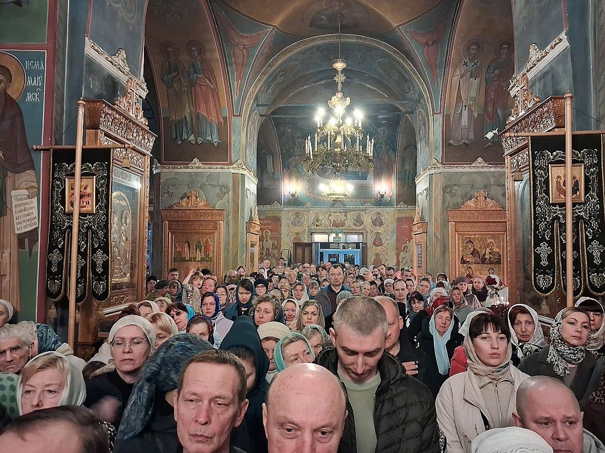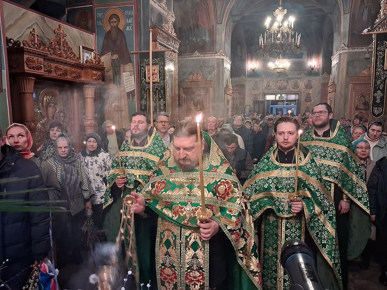 Накануне вечером в храме святого пророка Иоанна Предтечи было совершено всенощное бдение с чином освящения ваий, возглавил богослужение игумен Мефодий (Пронькин), настоятель храма. Утром, по обыкновению, отслужены две Божественные литургии.