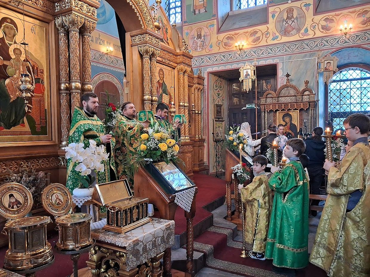 Позднюю литургию совершил игумен Мефодий (Пронькин), в сослужении иерея Александра Беляева и диакона Виктора Старосты.