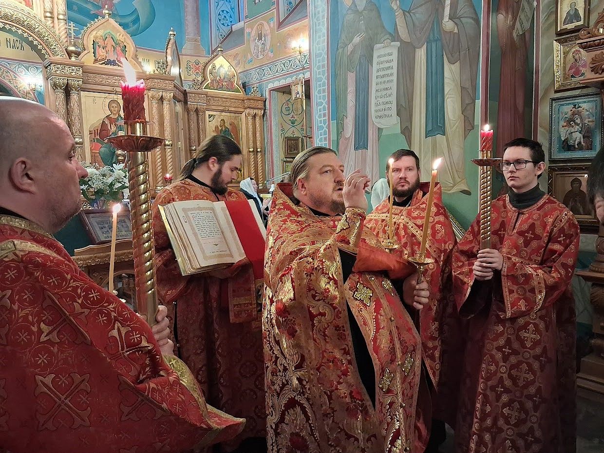 Позднюю литургию в центральном пределе, совершил настоятель храма игумен Мефодий (Пронькин), сослужили ему иерей Александр Беляев и диакон Виктор Староста.